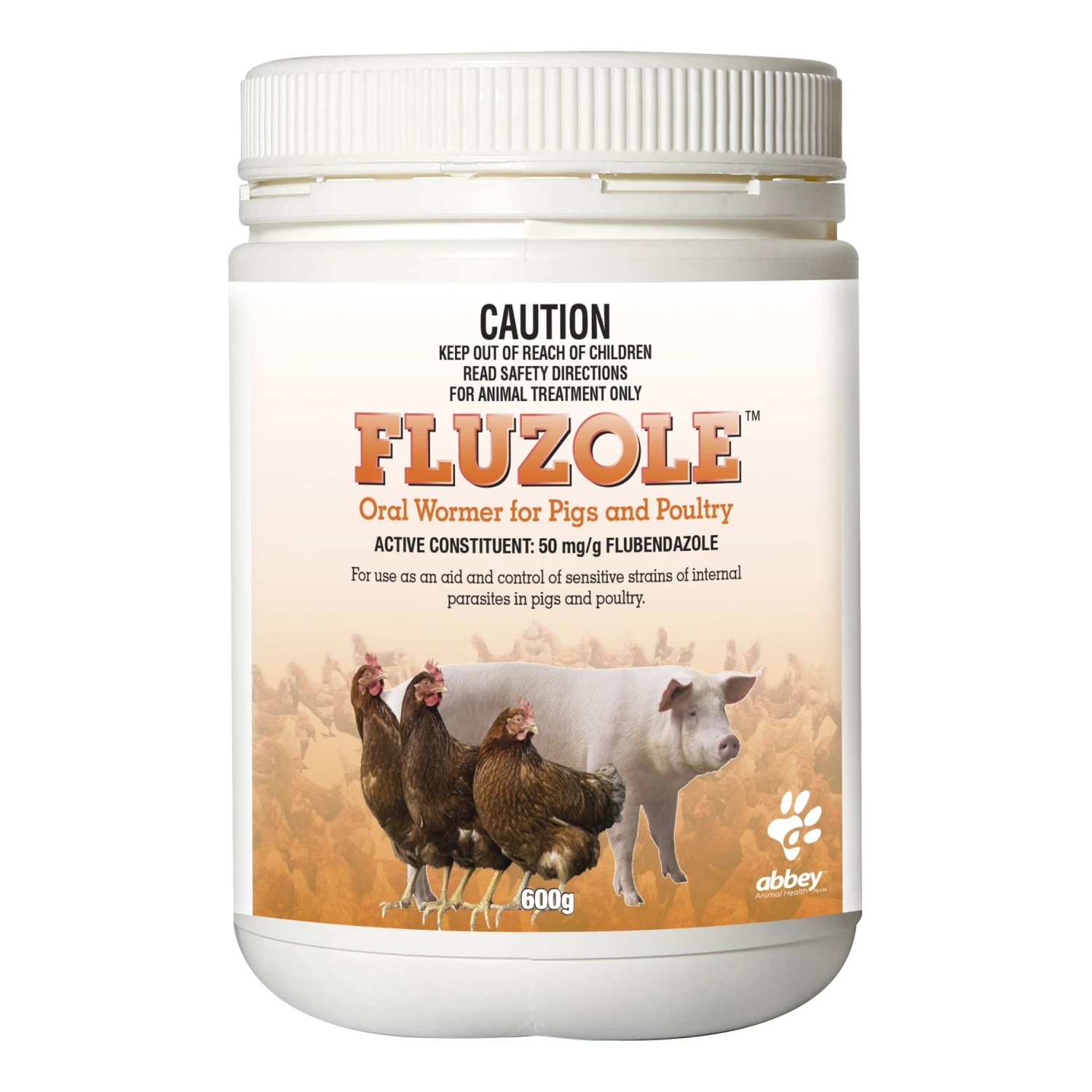 Fluzole Oral Wormer is for use as an aid and control of sensitive strains of internal parasites in pigs and poultry.