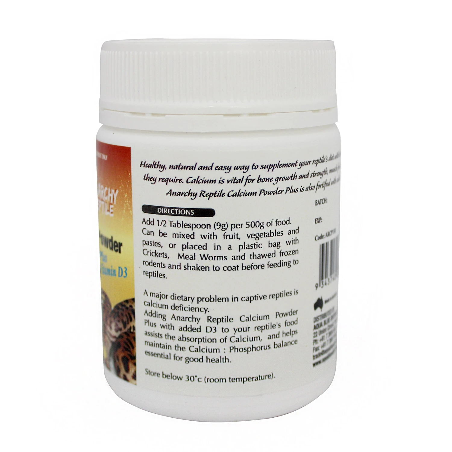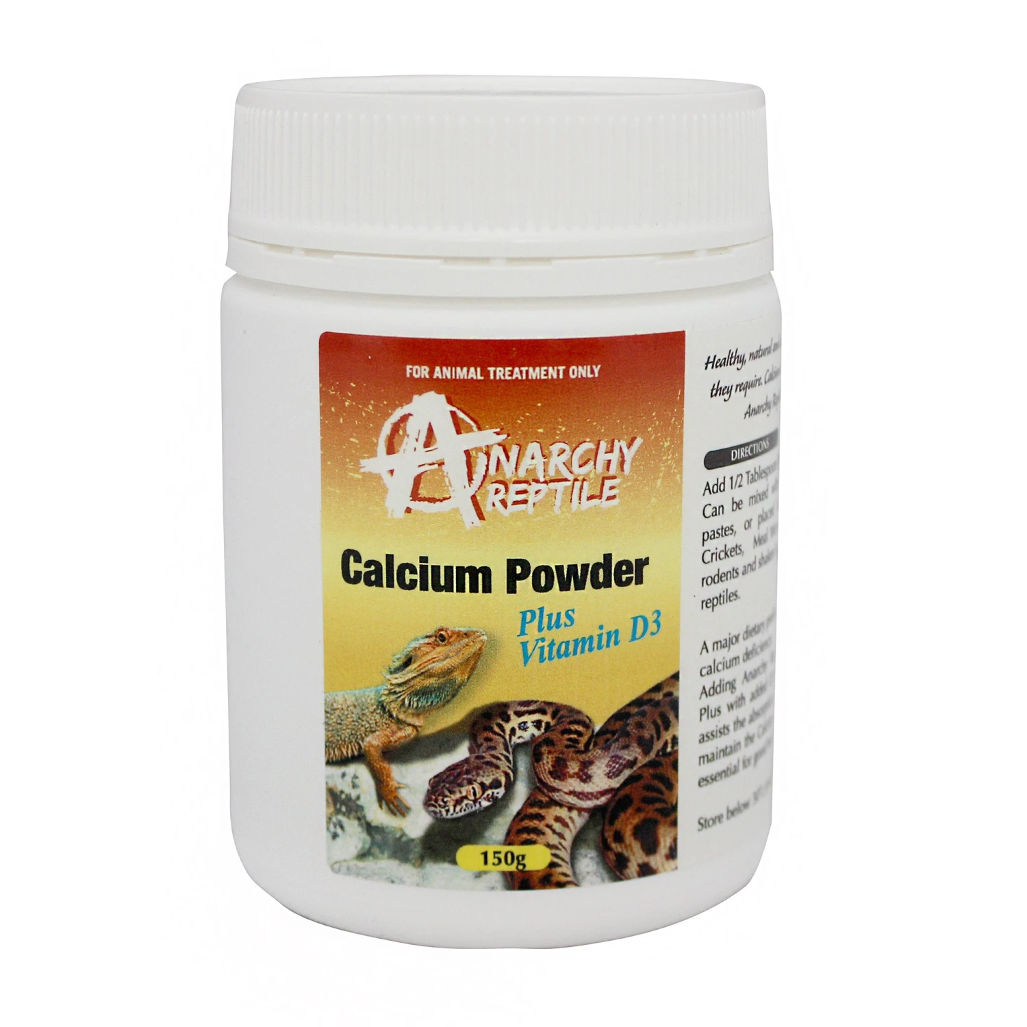 Anarchy Reptile Calcium Powder with D3 is a healthy, natural and easy way to supplement your reptile’s diet with the much needed calcium they require.