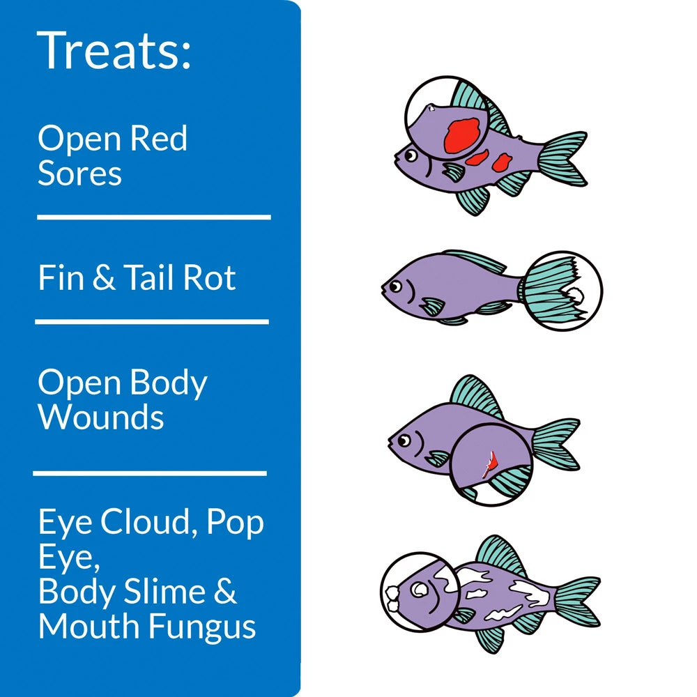 Product may be used when adding fish to an aquarium – particularly to smooth the transition from store to home – and if an infection is suspected, but not yet diagnosed.