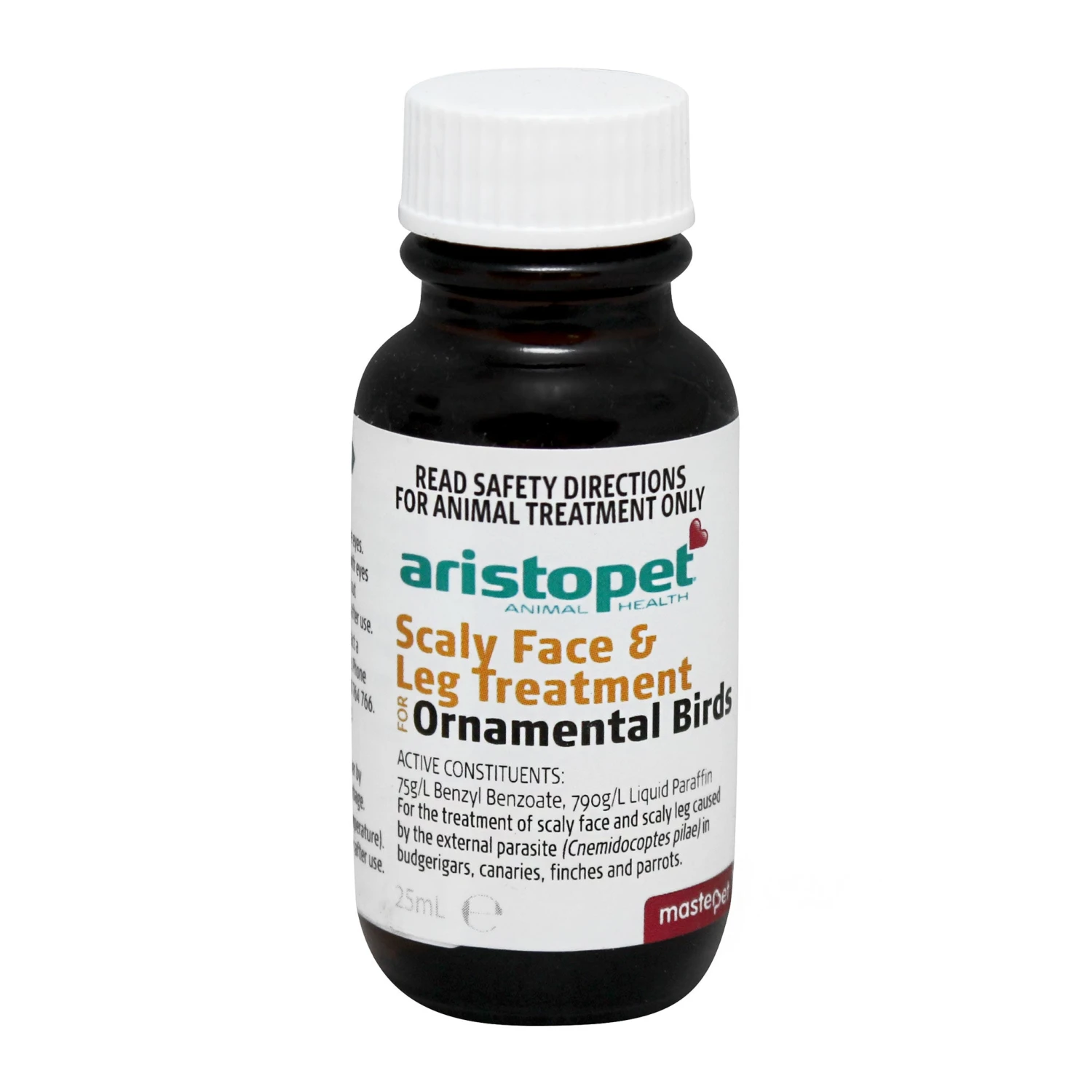 Aristopet Scaly Face & Leg Treatment is for the treatment of scaly face and scaly leg caused by the external parasite (Cnemidocoptes pilae) in budgerigars, canaries, finches and parrots.