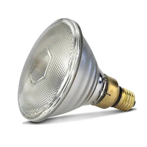 PAR38 bulbs are more efficient compared to standard glass bulbs lamp bulb designs due to the built in reflector system (note the metal sides in the image on this page).