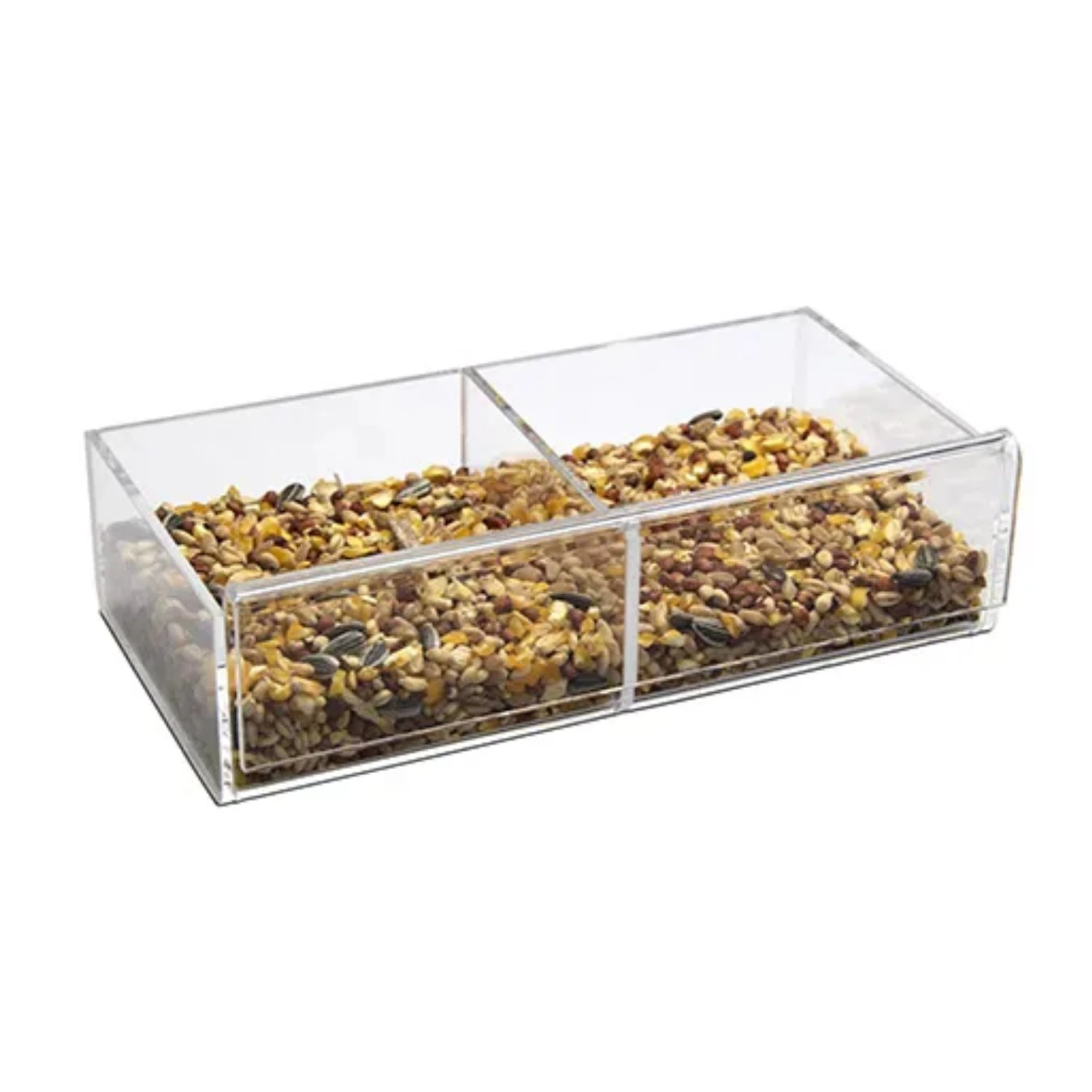 The Bainbridge Mess Free Feed Tray Insert is a feed divider for the Bainbridge Large Mess Free Bird Feeder.