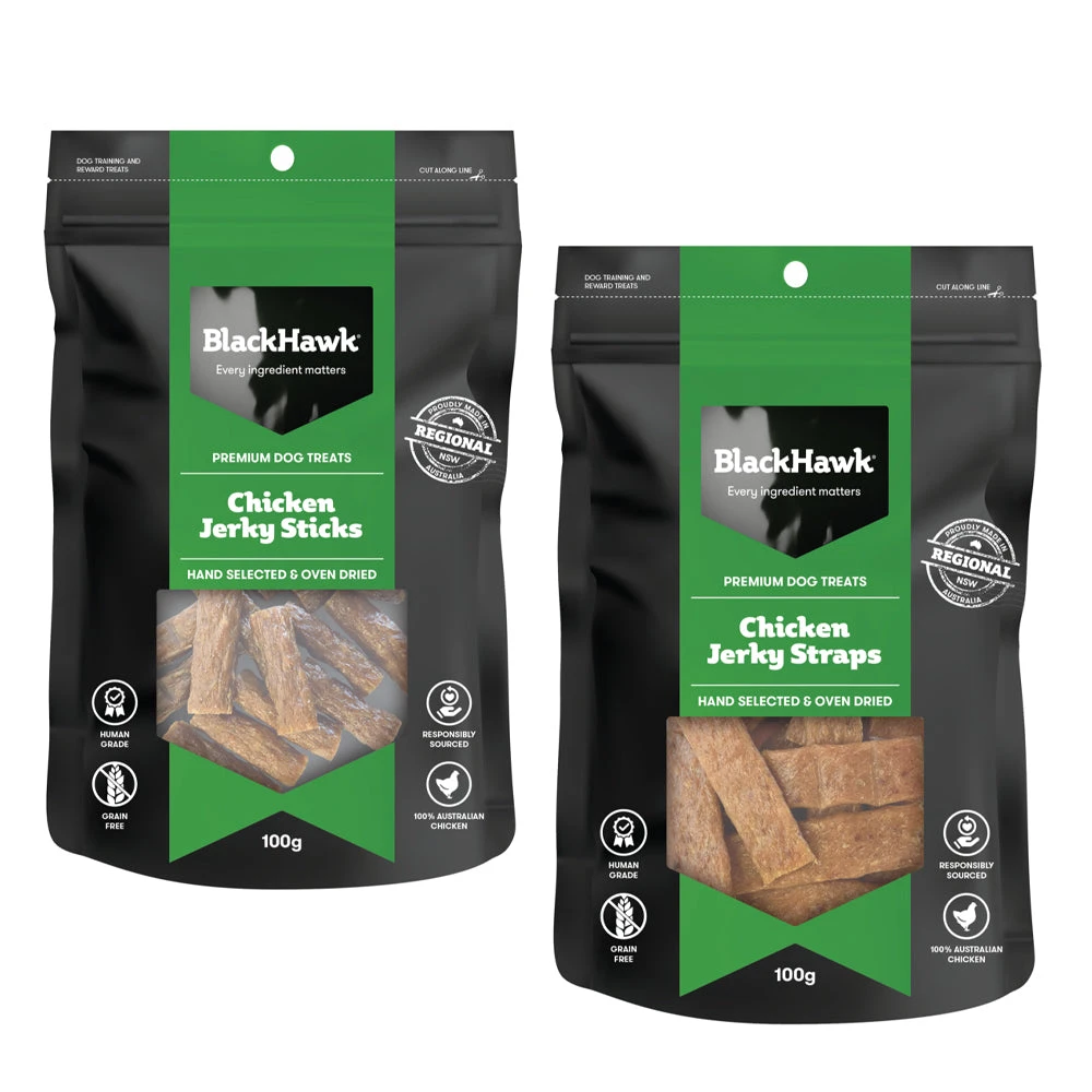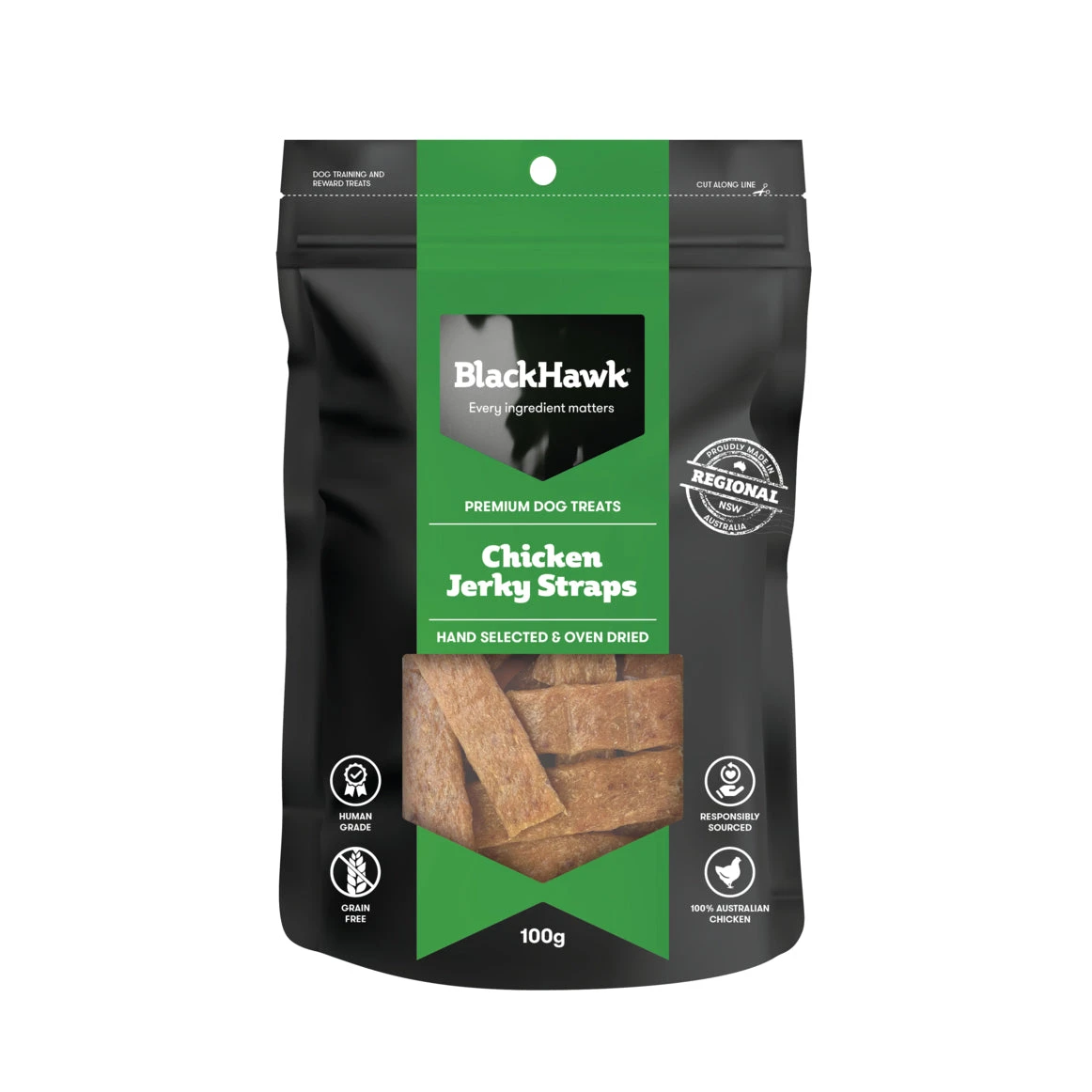 Black Hawk Chicken Jerky Straps are approximately 80mm long and 15mm wide. The result is a high quality treat ideal for medium to large dogs over 12 months of age.