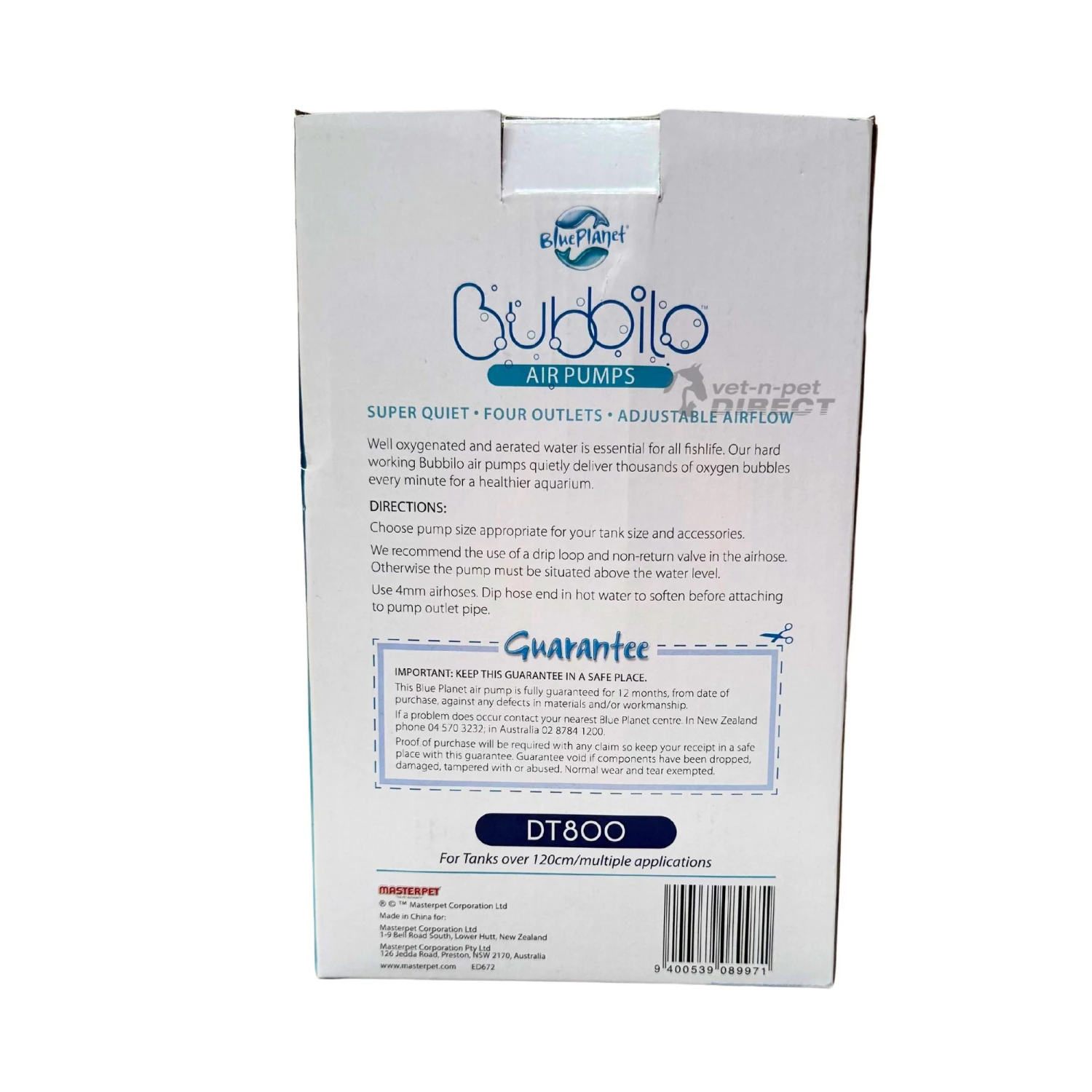 The Bubbilo 8 watt double twin air pump has 4 outlets and suits large aquariums or multiple smaller aquariums if together.