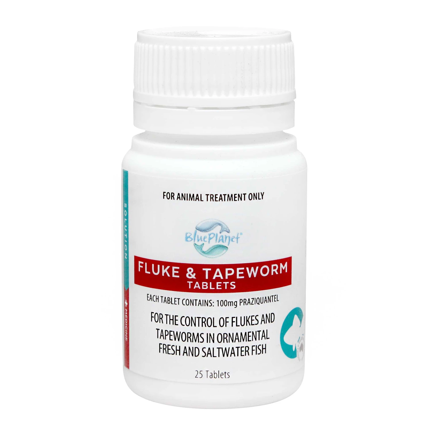 Blue Planet Fluke & Tapeworm Tablets is a treatment for flukes and tapeworms in ornamental fish. Blue Planet Fluke & Tapeworm Tablets have been developed specifically for in water medication of fresh and saltwater fish. The tablets have been specifically formulated with inert excipients to prevent pollution of aquariums. The tablets dissolve rapidly, releasing 95% of the active (praziquantel) within 10 minutes.