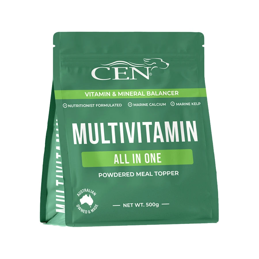 CEN Multivitamin Powdered Meal Topper Supplement can help fill in the nutritional deficiencies that may be present in your dog’s diet.