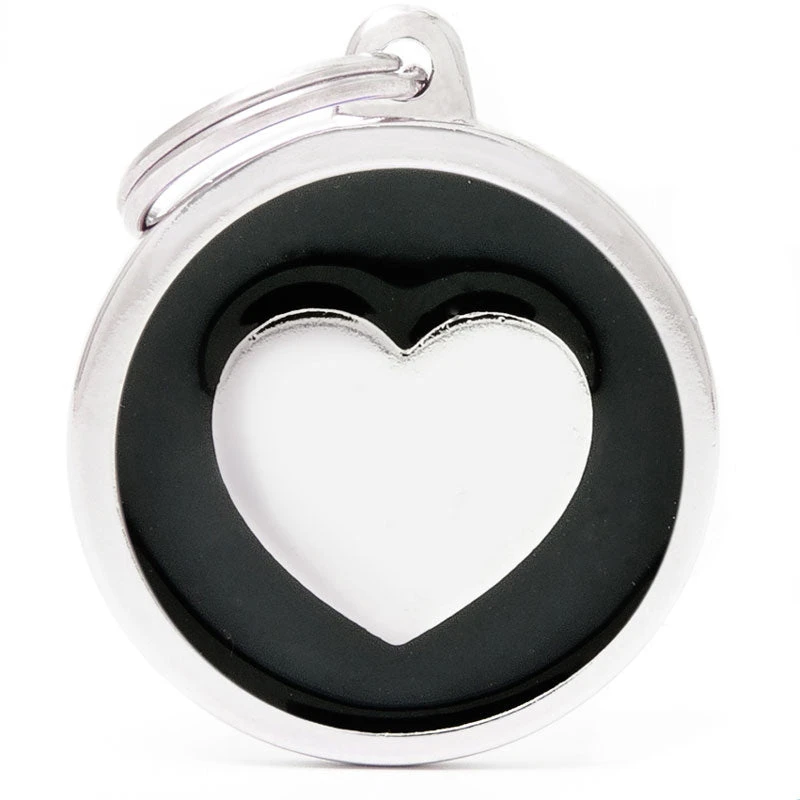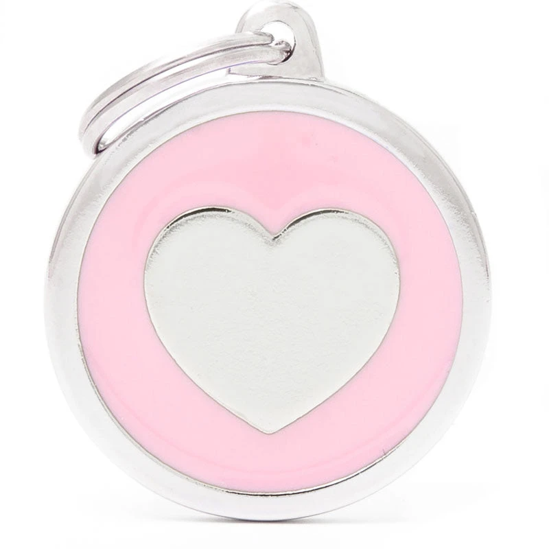The My Family Classic Big Circle Heart Pet ID Tag is fun, trendy, bizarre, eye-catching. For happy, lively dogs. These tags are made from hand-enamelled, precision-cast metal and non-allergenic material.