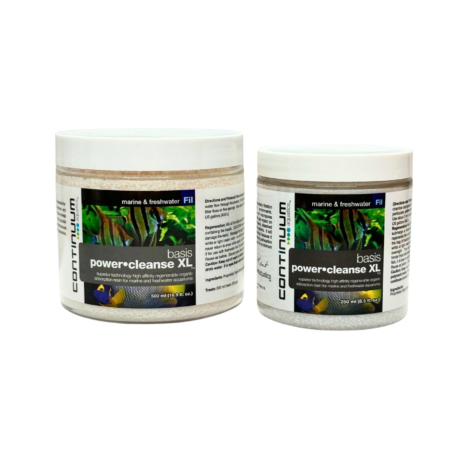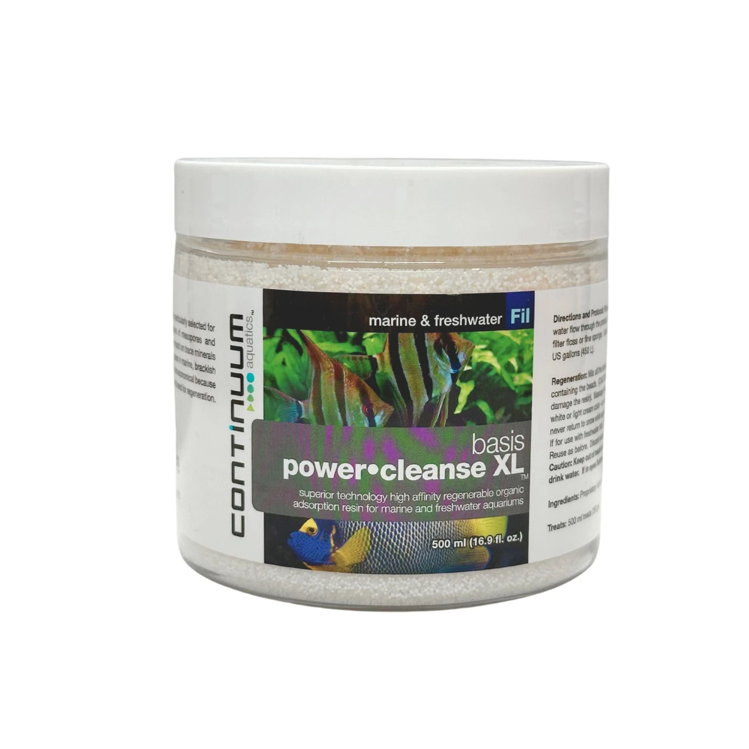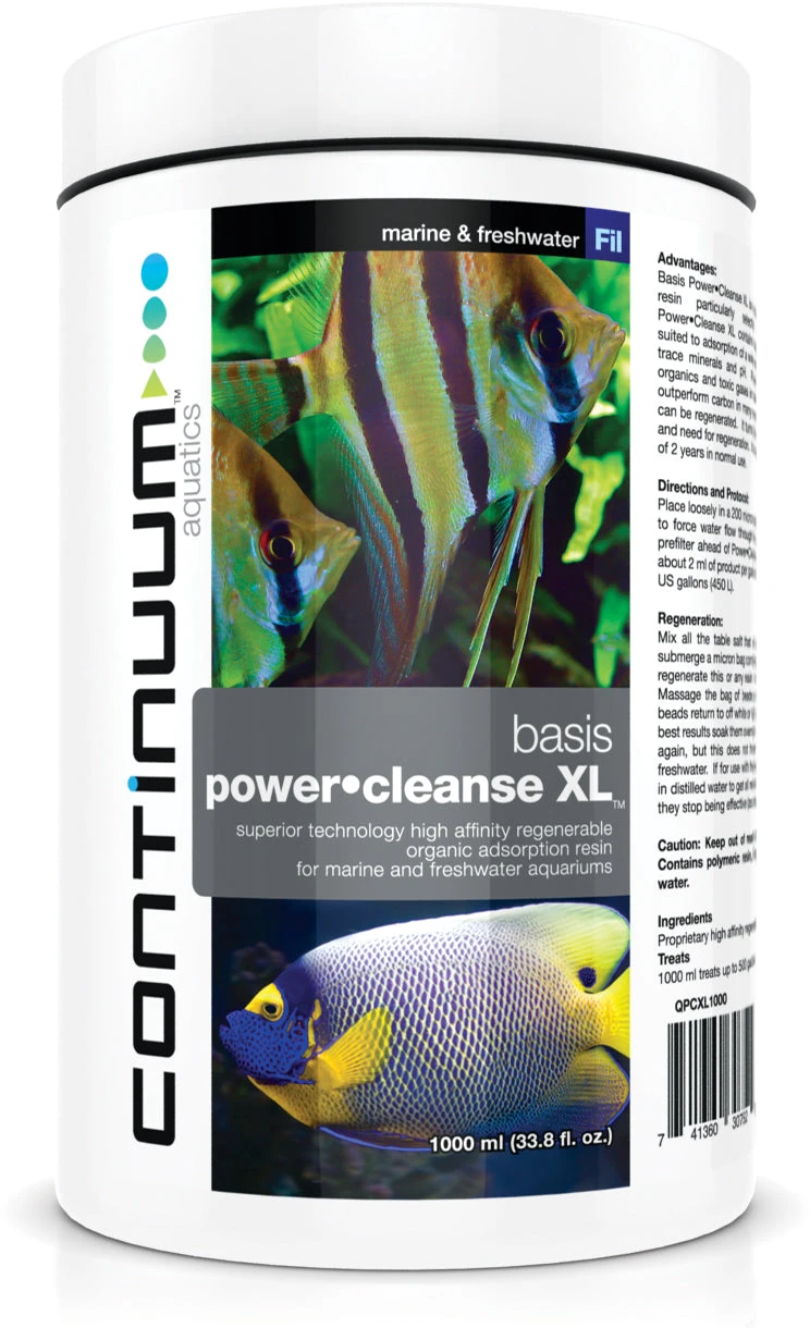 Continuum Basis Power.Cleanse XL is a high affinity, regenerable organic adsorption resin for marine & freshwater aquariums.