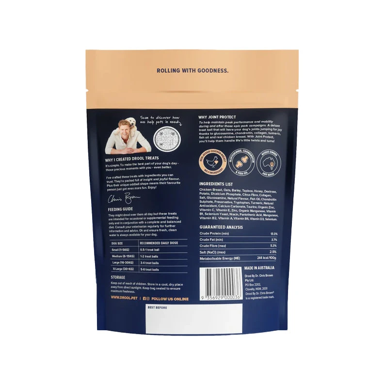 Drool Joint Protect Treat Balls are boosted with supplements and help maintain mobility and peak park performance.