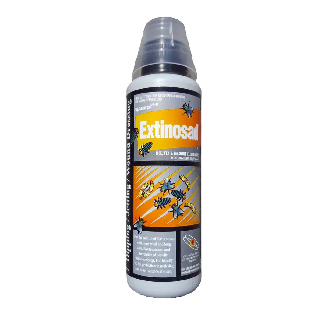 Extinosad Eliminator contains spinosad and is an effective treatment to clean up lice, blowflies and maggots in sheep. Extinosad Eliminator can be applied as a dipping fluid in plunge and shower dips for the control of lice in sheep with short wool (2 to 6 weeks’ wool) or as a jetting fluid to control lice and to treat and prevent blowfly strike in sheep with long wool (6 weeks to 12 months’ wool).
