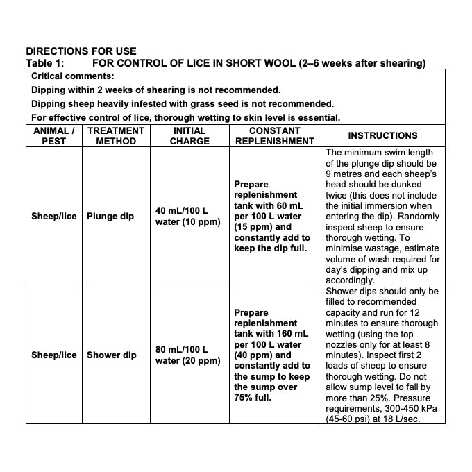 Sheep Rehandling Interval: After treatment wait until sheep are dry before rehandling.