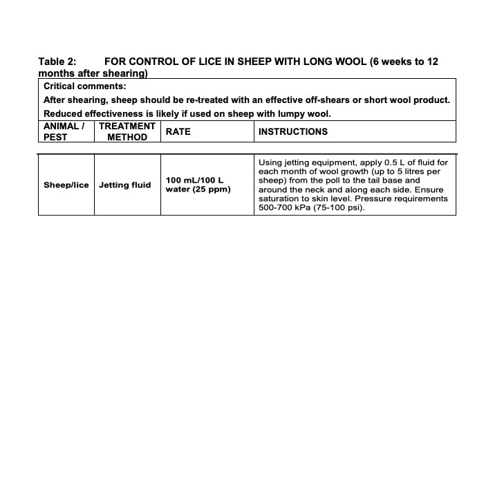 • Controls lice in short wool or long wool