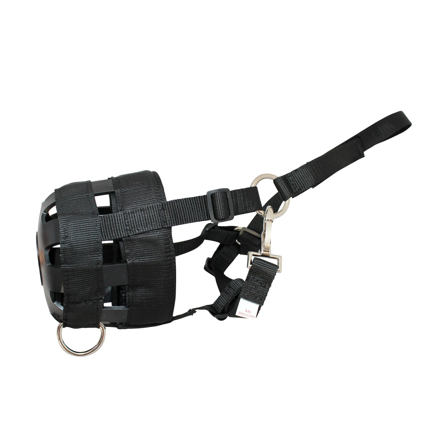 - The muzzle is made of nylon webbing material with rubber inserts and muzzle bottom.