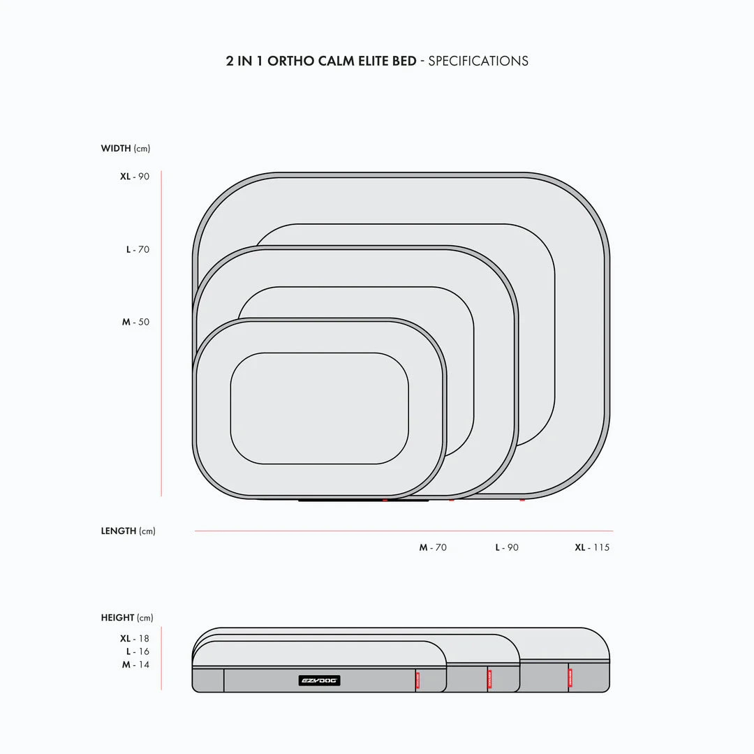The EzyDog Ortho Calm Elite Bed is the ultimate in luxury support and comfort for your dog. This innovative sleeping cushion provides weightless sleep and unrivalled relaxation and rejuvenation.