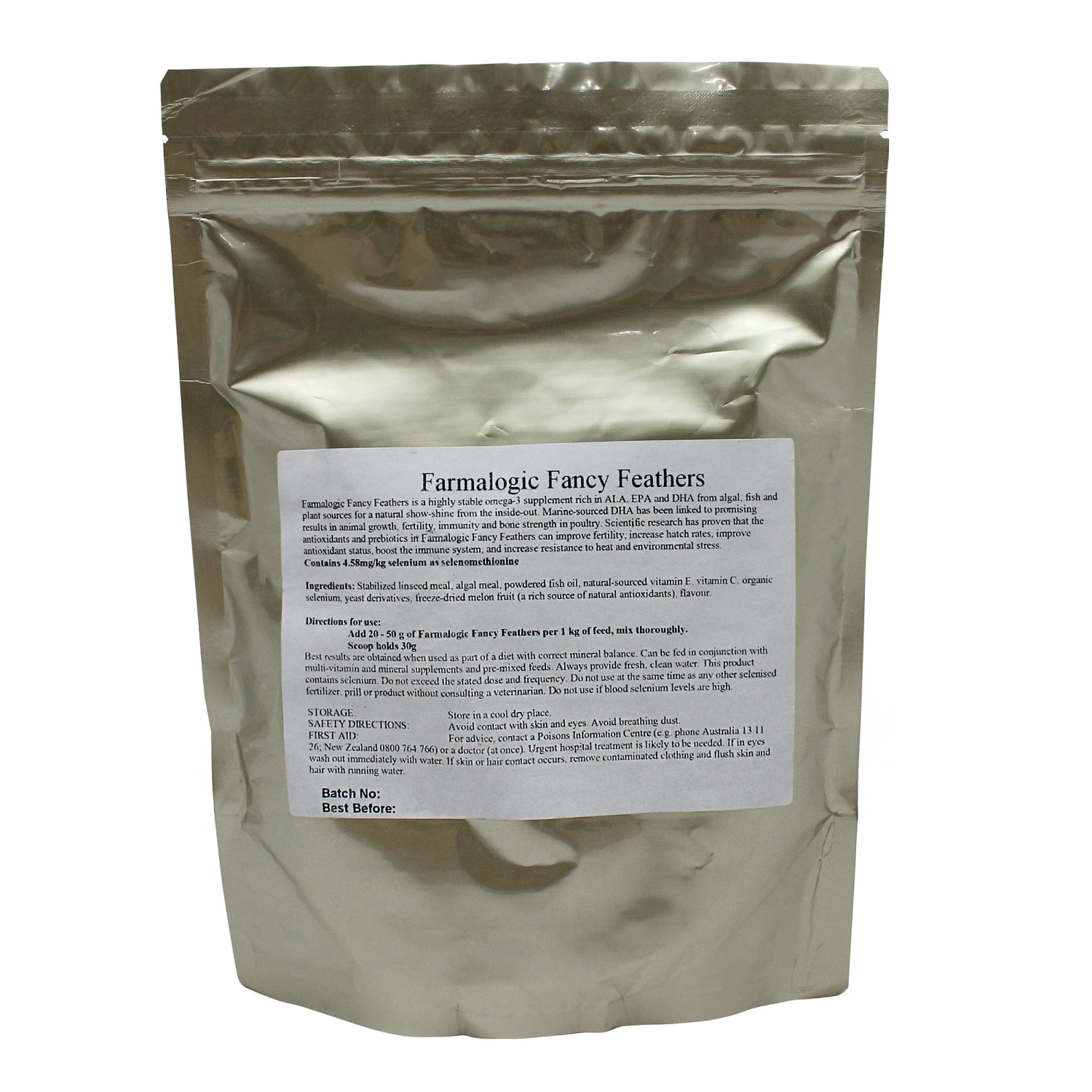 Farmalogic Fancy Feathers is a blend of antioxidants and highly stable omega-3 supplements rich in ALA, EPA and DHA from algal, fish and plant sources for a natural show-shine from the inside-out.