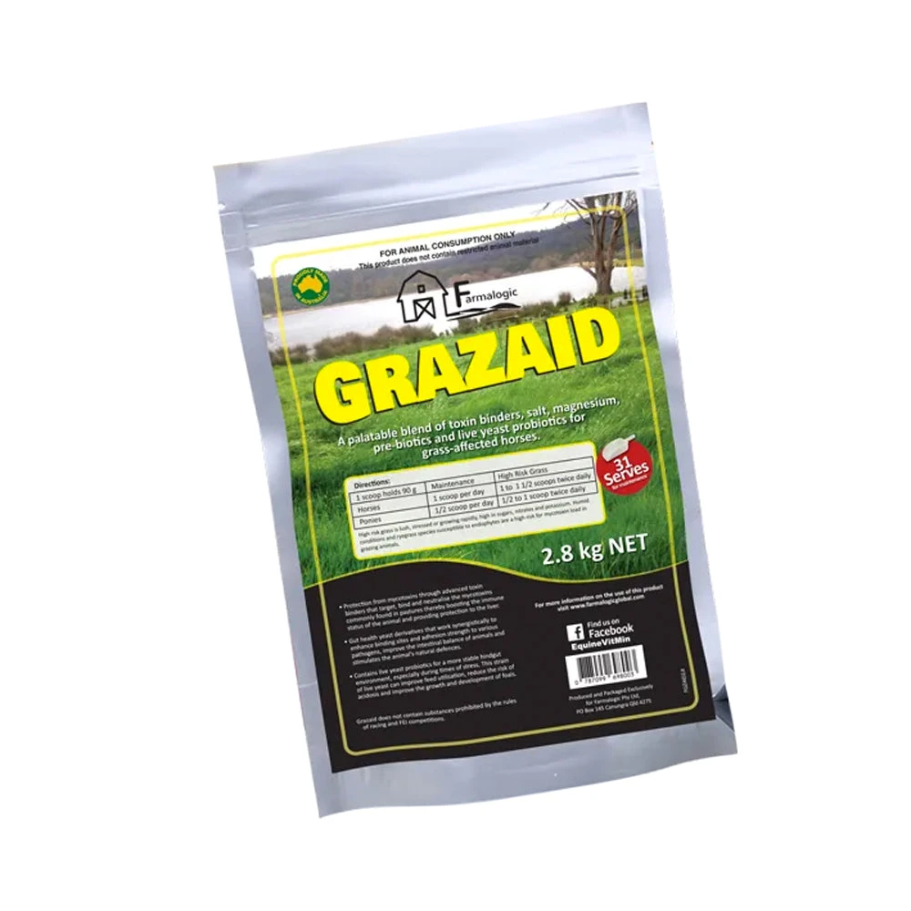 Grazaid is a palatable blend of broad-spectrum toxin binders, salt, magnesium, live yeast probiotics and yeast derivatives as a nutritional digestive aid and to supplement mineral levels where dietary intakes may be inadequate.