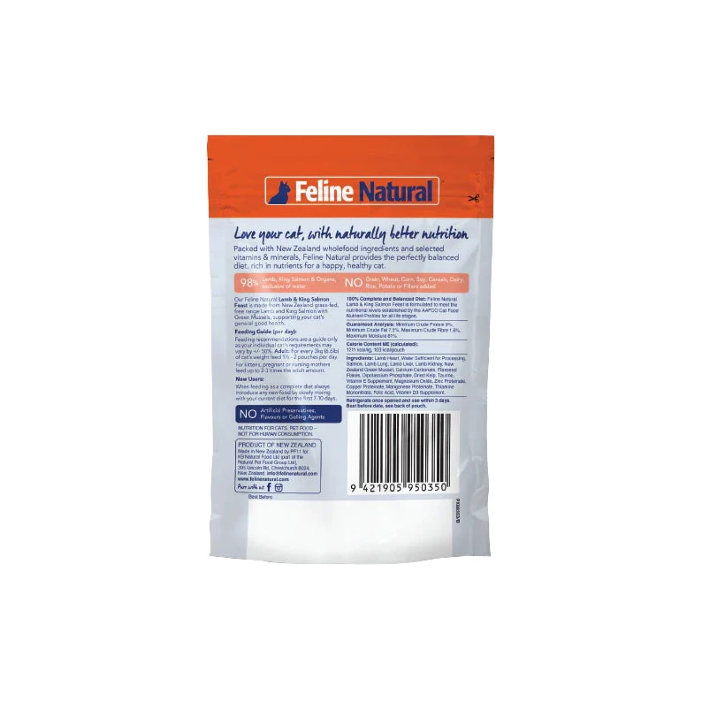 Feline Natural pouched cat food can be served on it’s own as a complete & balanced meal, or served on top of your cat’s existing food to increase it’s nutrient content and improve it’s taste.