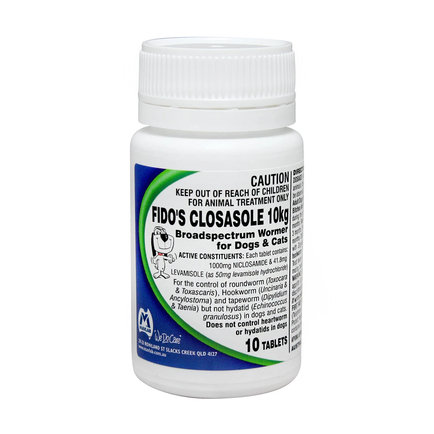 Available in bottles of 10 tablets (enough for 2 treatments of 2 average dogs) and 100 tablet economy packs.