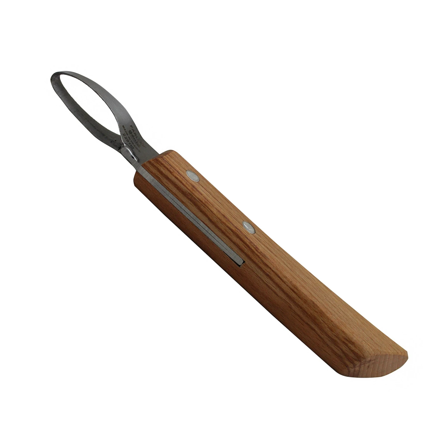 At last, the ultimate eye-loop type hoof knife, professionally made in France of the finest steel. Genia hoof knives are very sharp and treated to reduce or prevent corrosion. The hardwood handle is securely riveted to the blade.