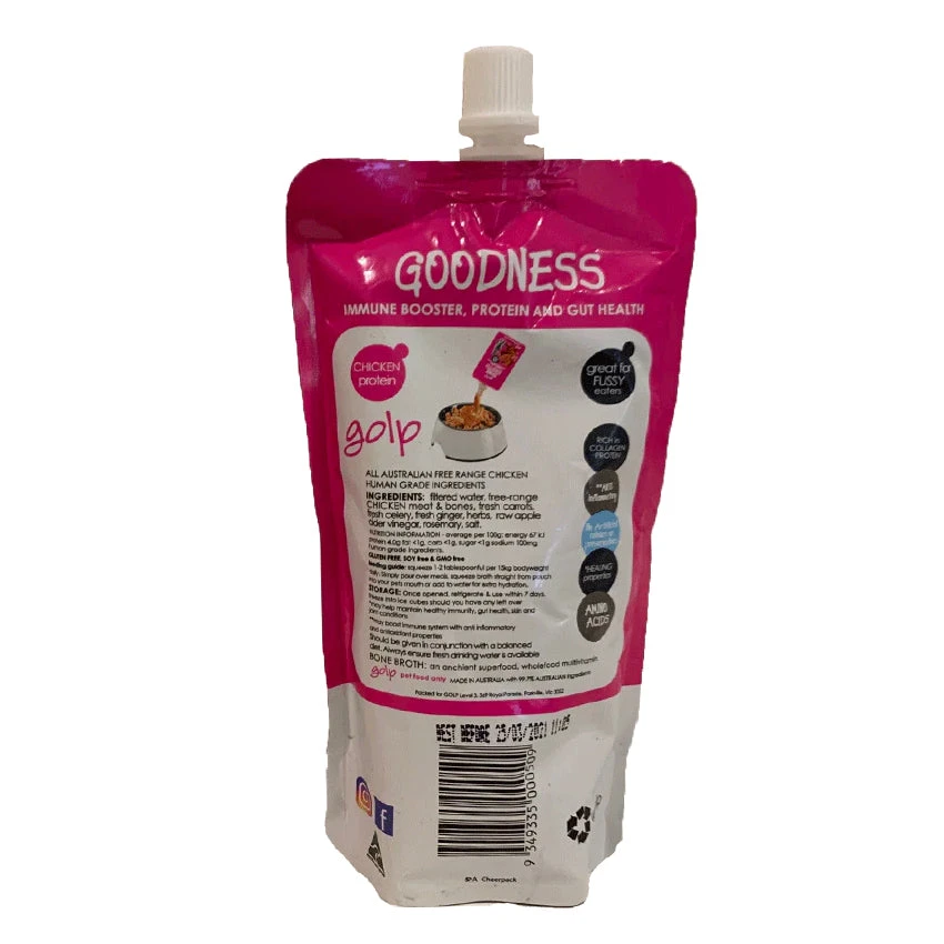This is an ancient super-food, wholefood & multivitamin. We all know how important it is to maintain a healthy gut microbiome. Golp Bone Broth may be the perfect addition to assist with healing your dog’s tummy by adding powerful nutrients to meals.