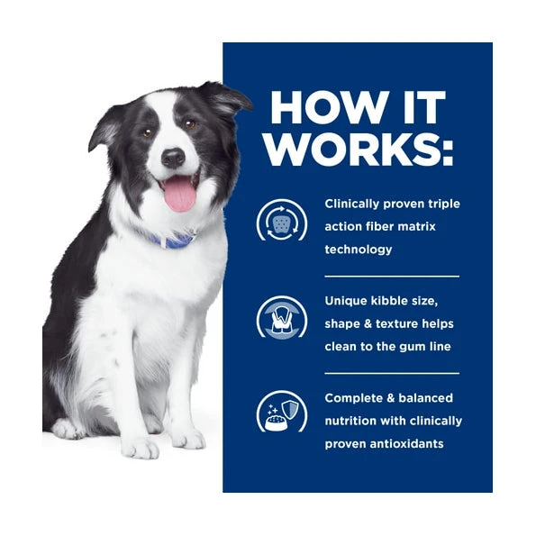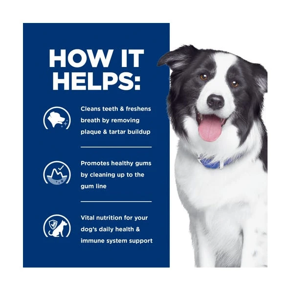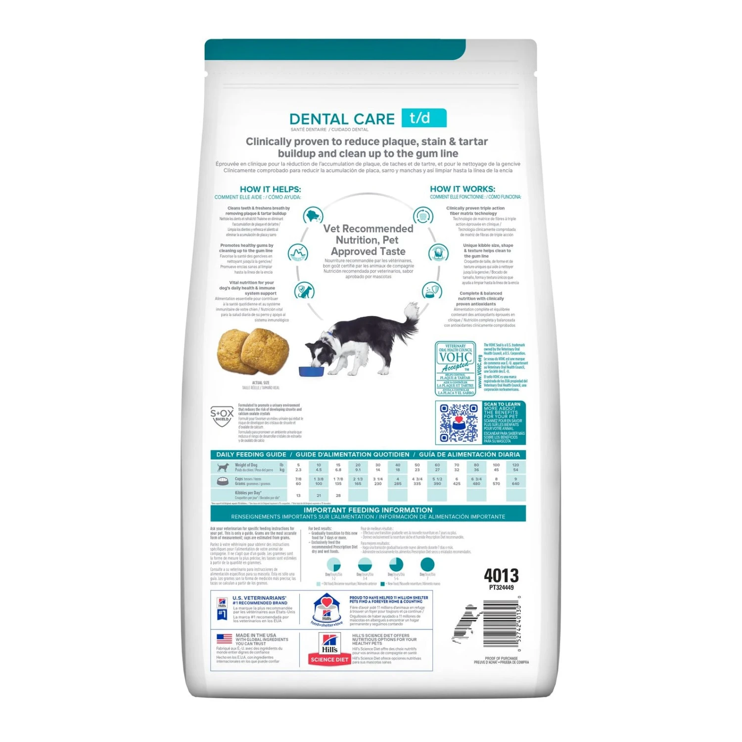Exclusive feeding of Hill’s Prescription Diet t/d Dog Dry Food has been shown to be more effective than toothbrushing. Hill’s nutritionists & veterinarians developed Prescription Diet t/d clinical nutrition to promote healthy gums and teeth and support your dog’s overall health. Hill’s Prescription Diet t/d Dry Dog Food is accepted as the ONLY therapeutic nutrition for proven reduction in buildup of both plaque & tartar by Veterinary Oral Health Council (VOHC).*