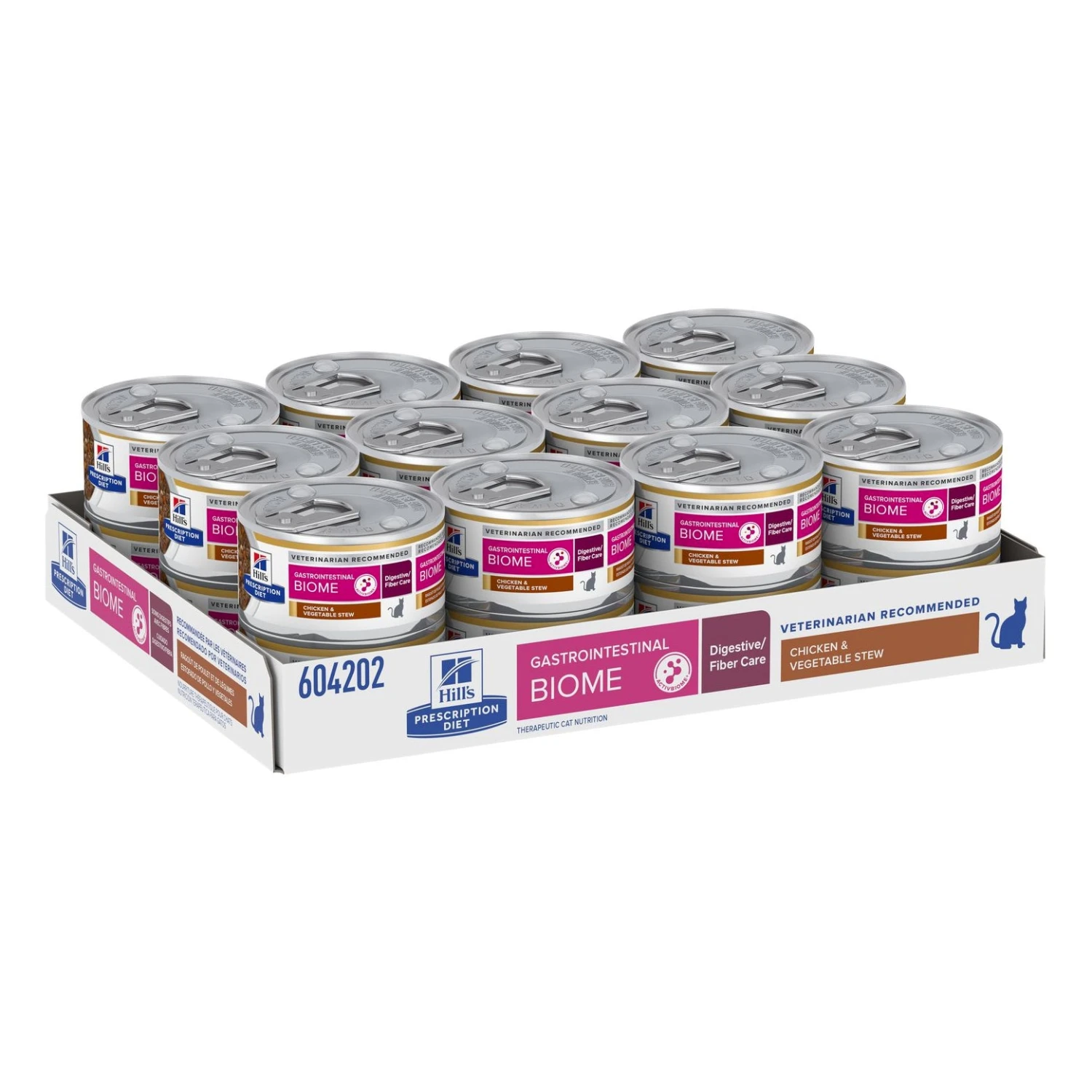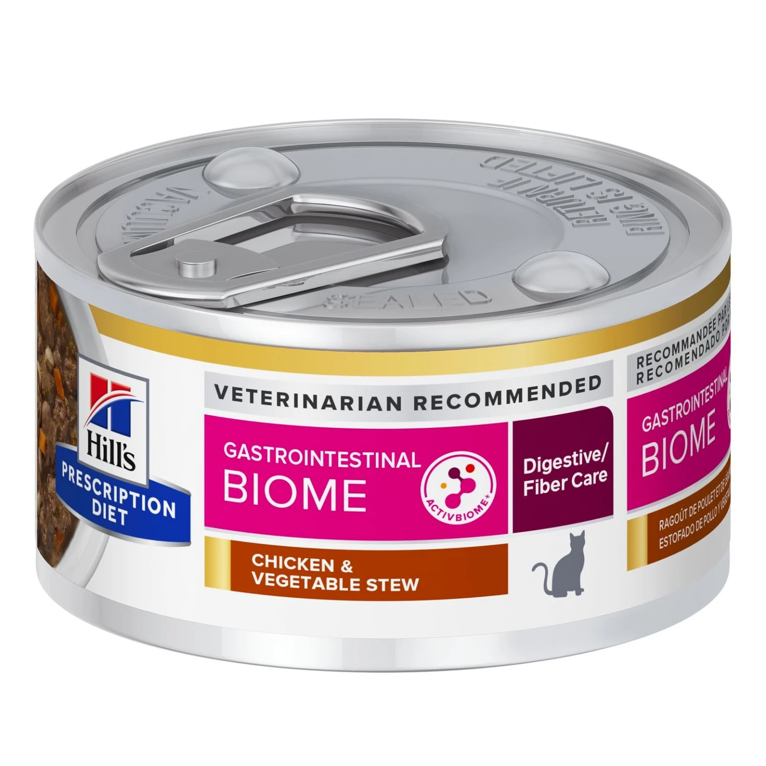 Hill’s Prescription Diet Gastrointestinal Biome Stew for Cats is a complete dietetic pet food for the reduction of acute intestinal absorptive disorders and for compensation for maldigestion in adult cats. This dietetic pet food has an increased level of electrolytes, highly digestible ingredients and low level of fat.