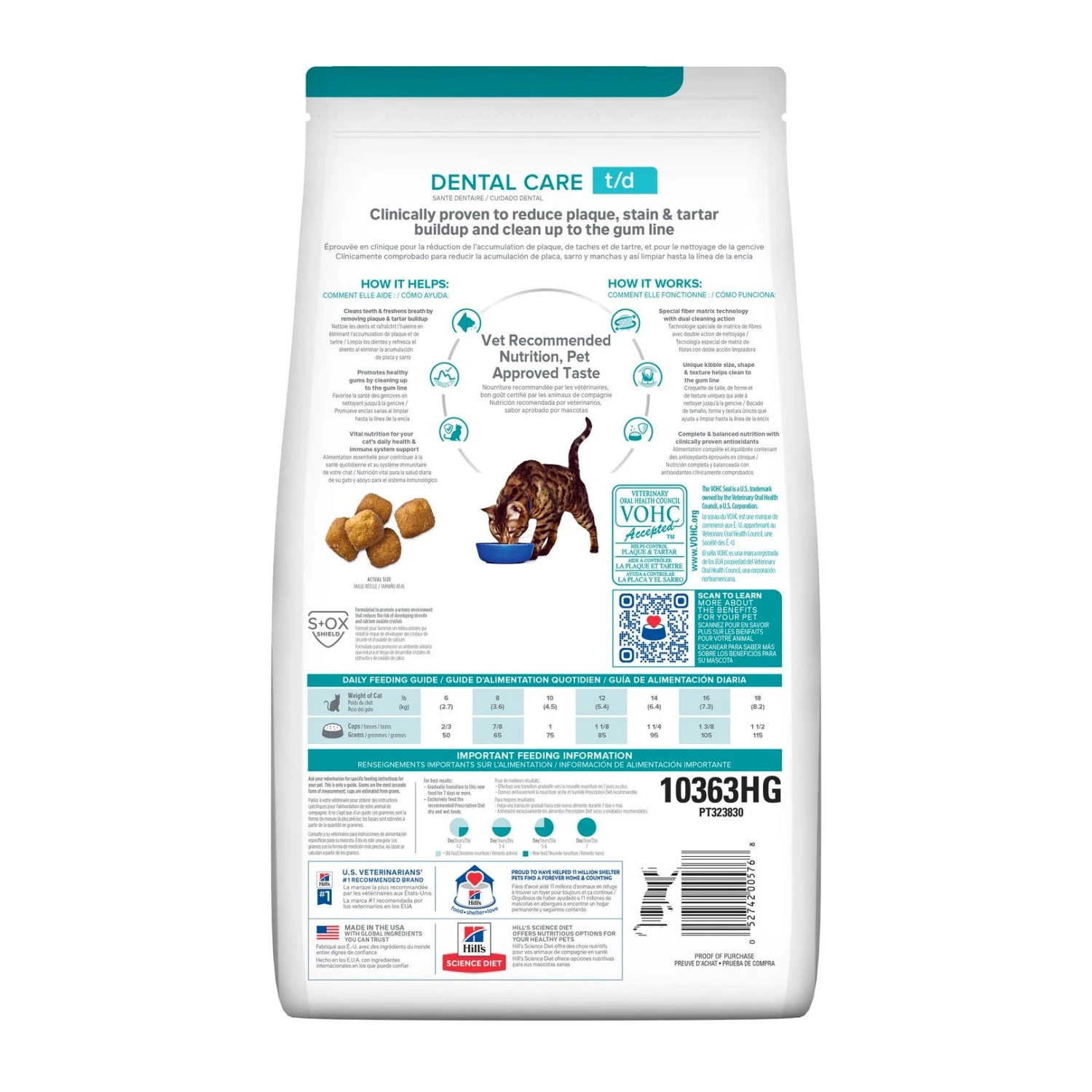 Hill’s Prescription Diet t/d Dry Cat Food is accepted nutrition for the reduction in buildup of plaque & tartar by Veterinary Oral Health Council (VOHC)*.