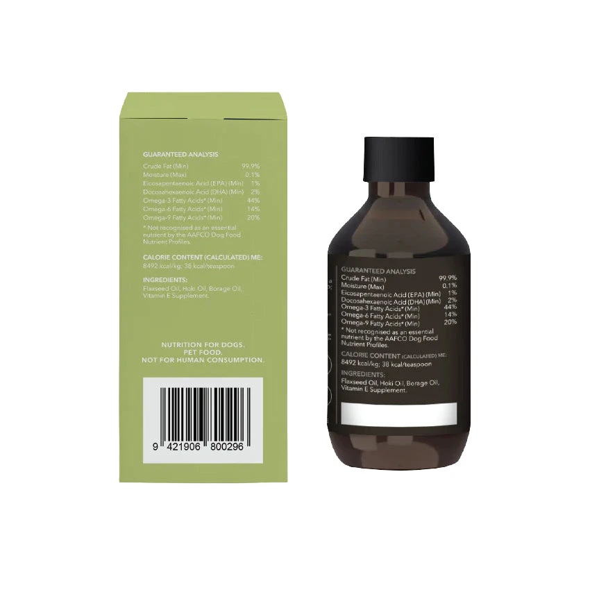 Formulated to support healthy immunity, Skin & Coat Health is a premium blend of New Zealand cold-pressed Flaxseed, Hoki, and Botanical Borage Oil, and is a great supplement for glossy skin and coat in dogs of all ages.