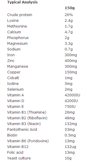 - To top up vitamins, minerals and amino acids when premixed feeds are fed below recommended levels