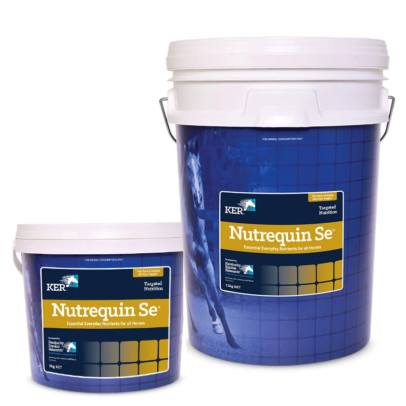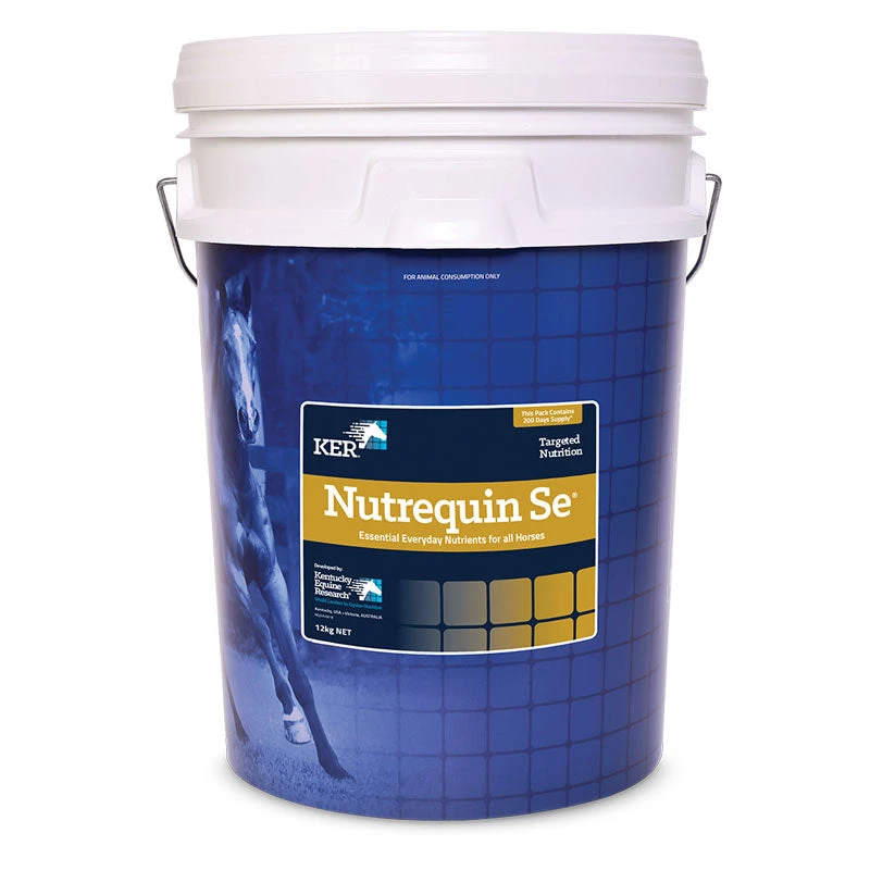 NUTREQUIN is a vitamin and trace mineral supplement on a palatable protein meal base designed to balance the diet of horses getting a traditional diet of home mix grains and forage. Unlike many similar supplements it contains vitamin C along with amino acids.