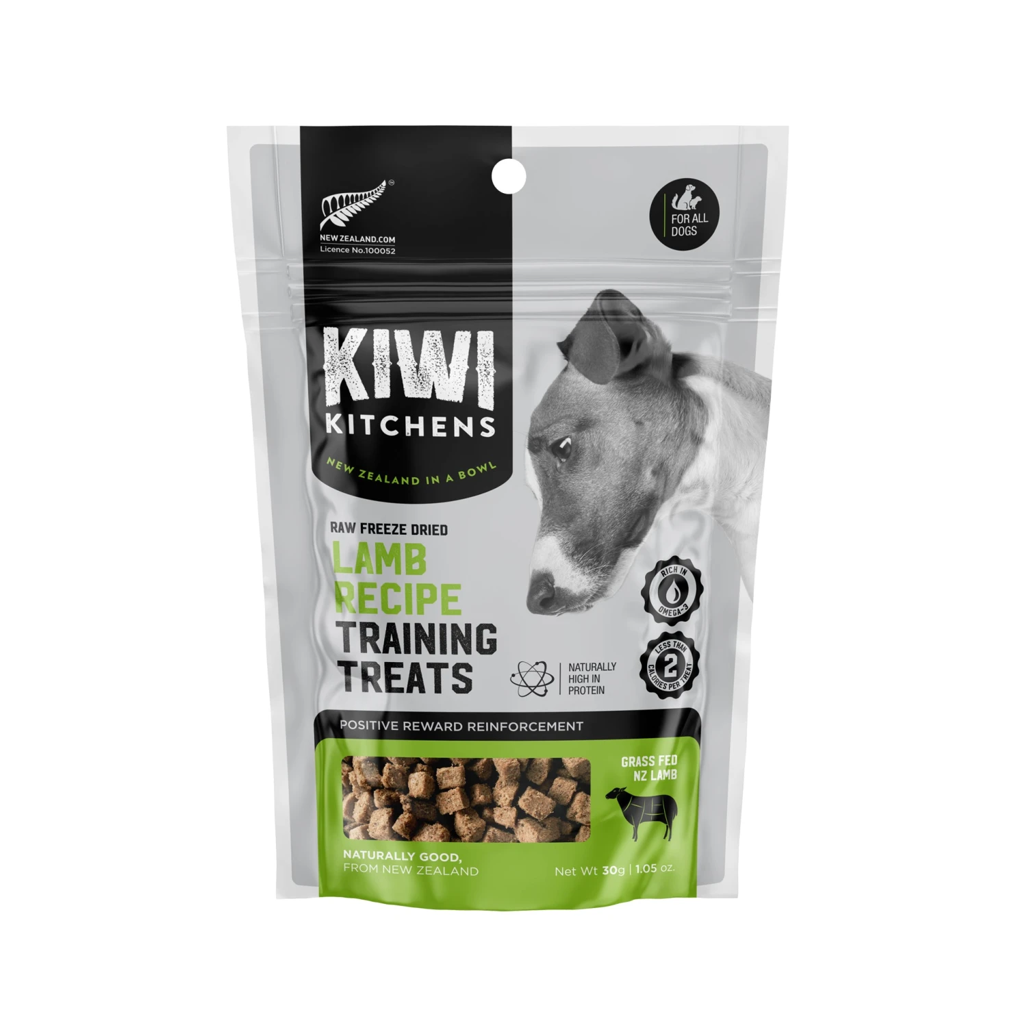 Kiwi Kitchens Raw Freeze Dried Lamb Training Treats are low calorie treats using meat and organs from New Zealand grass fed lamb.