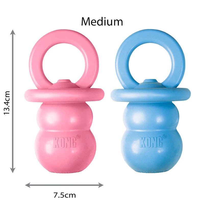 - Unique pacifier shape and soft KONG Puppy Rubber designed to soothe sore teeth and gums