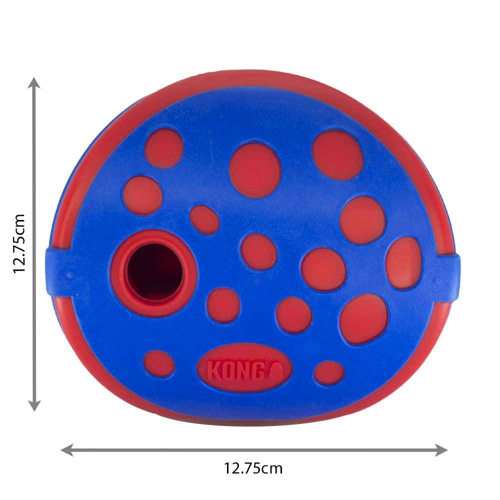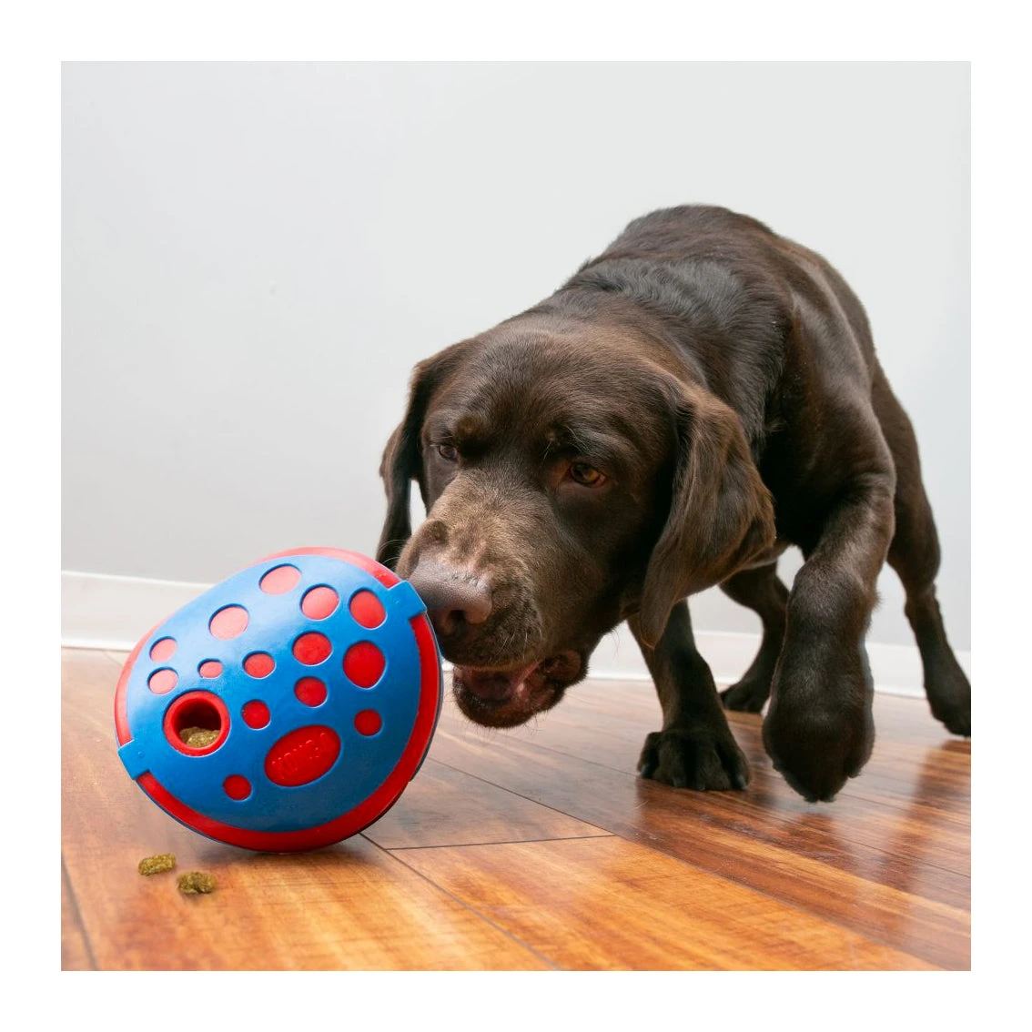 KONG Rewards Wally produces a slow and steady roll when nudged, gradually dispensing kibble or treats.