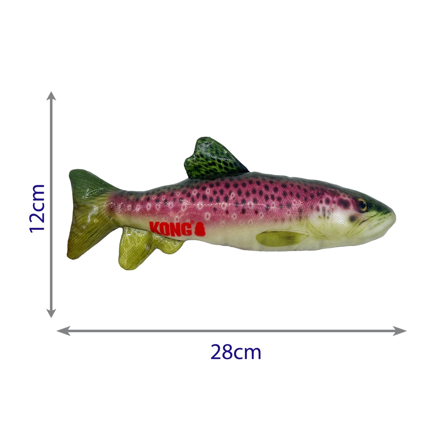 KONG Shieldz Wild Trout is an ultra-durable training tool, triple coated and sealed to last through epic water retrieval sessions to hone hunting and dock diving skills while satisfying natural instincts with interactive fun.
