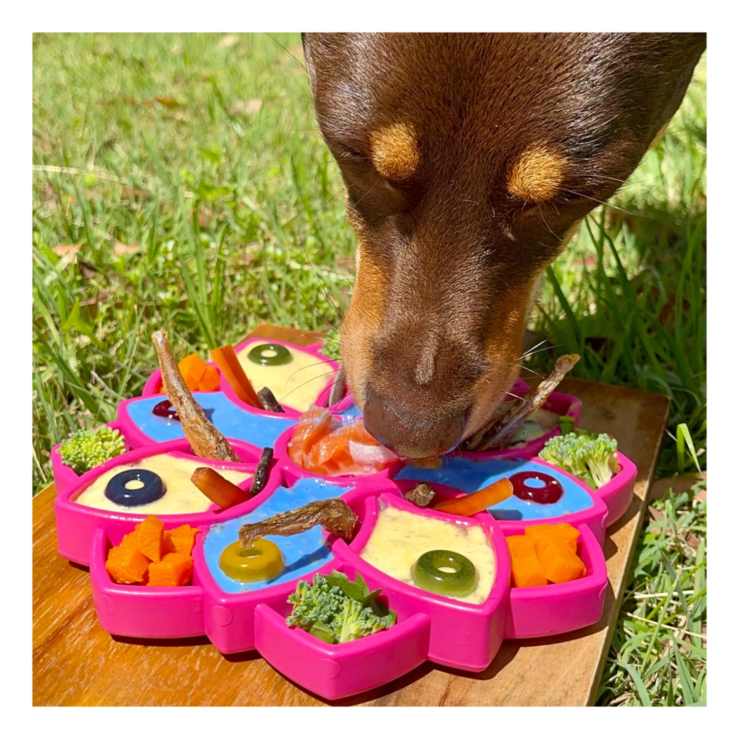 The Mandala eTray marries the benefits of lick mats with the benefits of a slow feeder bowl!