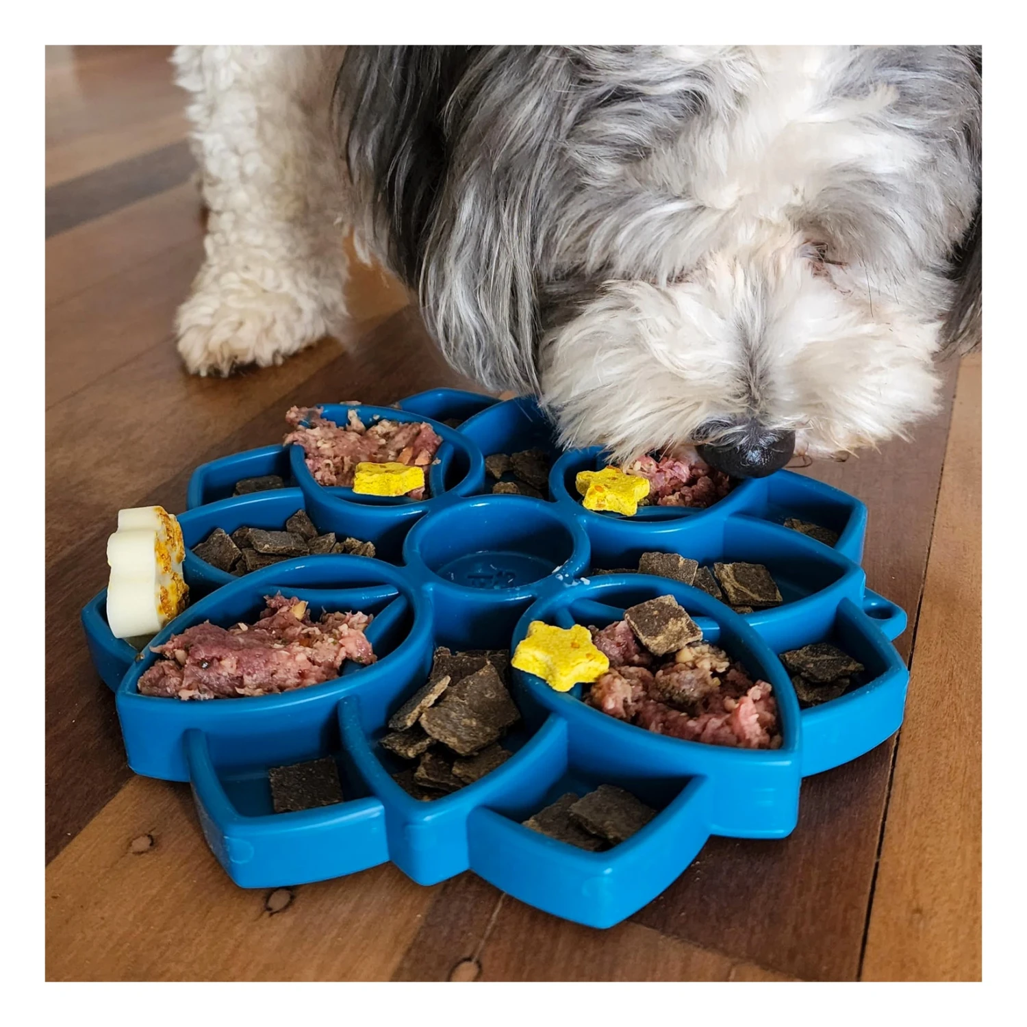 The Mandala is Ideal for flat nosed dogs like bully breeds that may struggle with deeper slow feeder bowls. The design is a shallow slow feeder devised so it achieves slower eating without becoming impossible for some breeds to use.