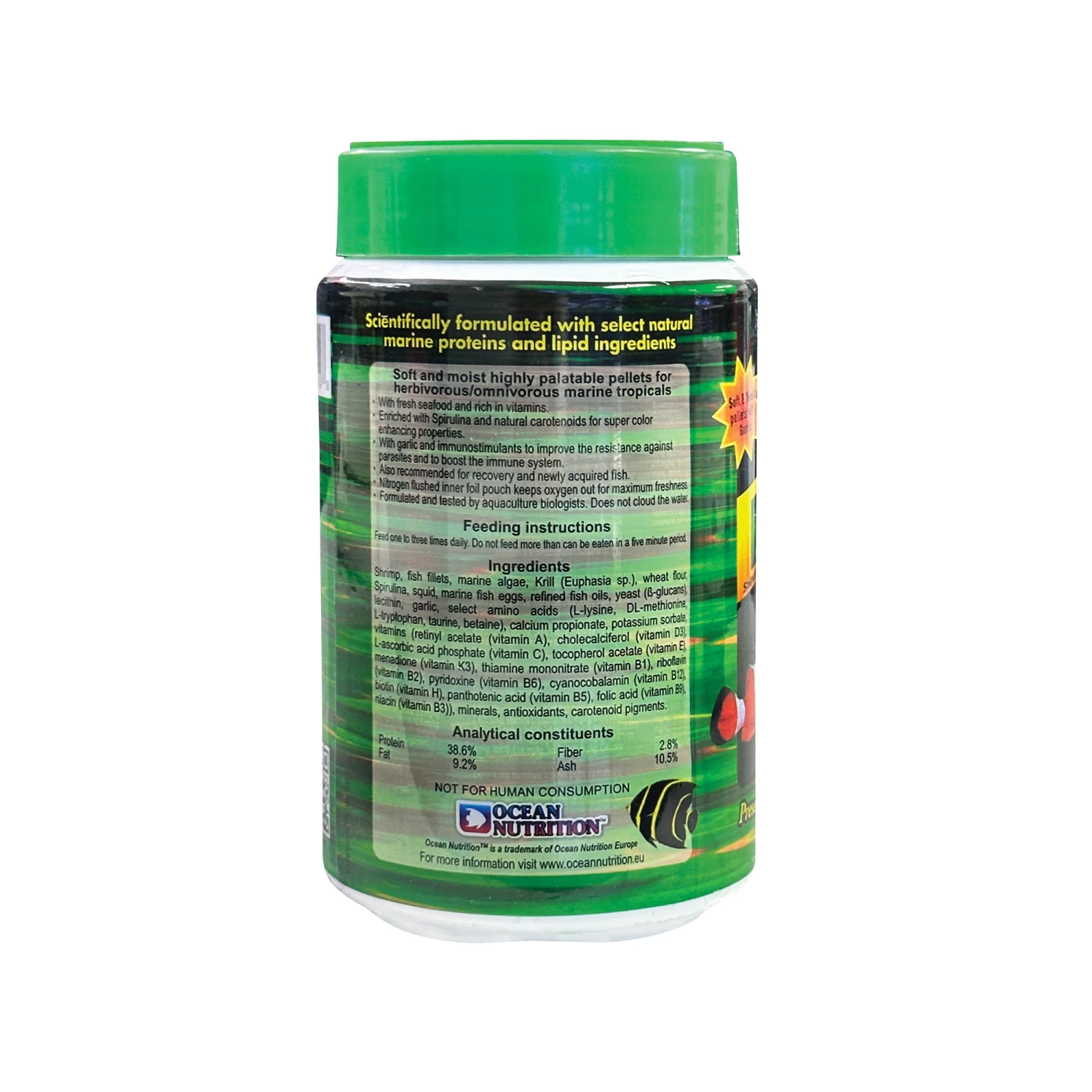 Ocean Nutrition Formula 2 Marine Pellet is a perfectly soft and moist pellet packed in nitrogen flushed foil bags for maximum freshness. Main characteristics are increased palatability and easy digestion. Contains garlic to improve disease resistance, Spirulina, kelp, shrimp, plankton, and squid. This food is intended for herbivorous and omnivorous fish.