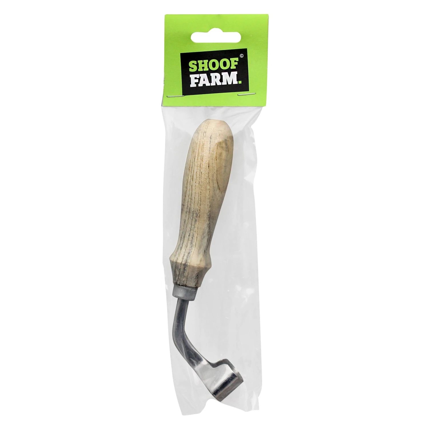The Paring Knife is a different shape hoof knife used for planing off flat areas of over-grown hoof, without skinning your knuckles.