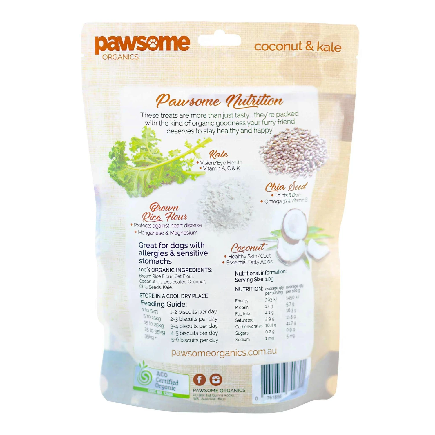 Pawsome Coconut and Kale treats are brimming with nutritious ingredients to enrich your dog’s health. Coconut is a known superfood with antibacterial, antiviral and antifungal properties to give the immune system a boost. It is also full of omega-6 which helps keep the coat nice and shiny. In addition to this, the magnesium, vitamin K and iron in the kale, aid to improve the health of the entire cardiovascular system, which will keep the heart stronger.