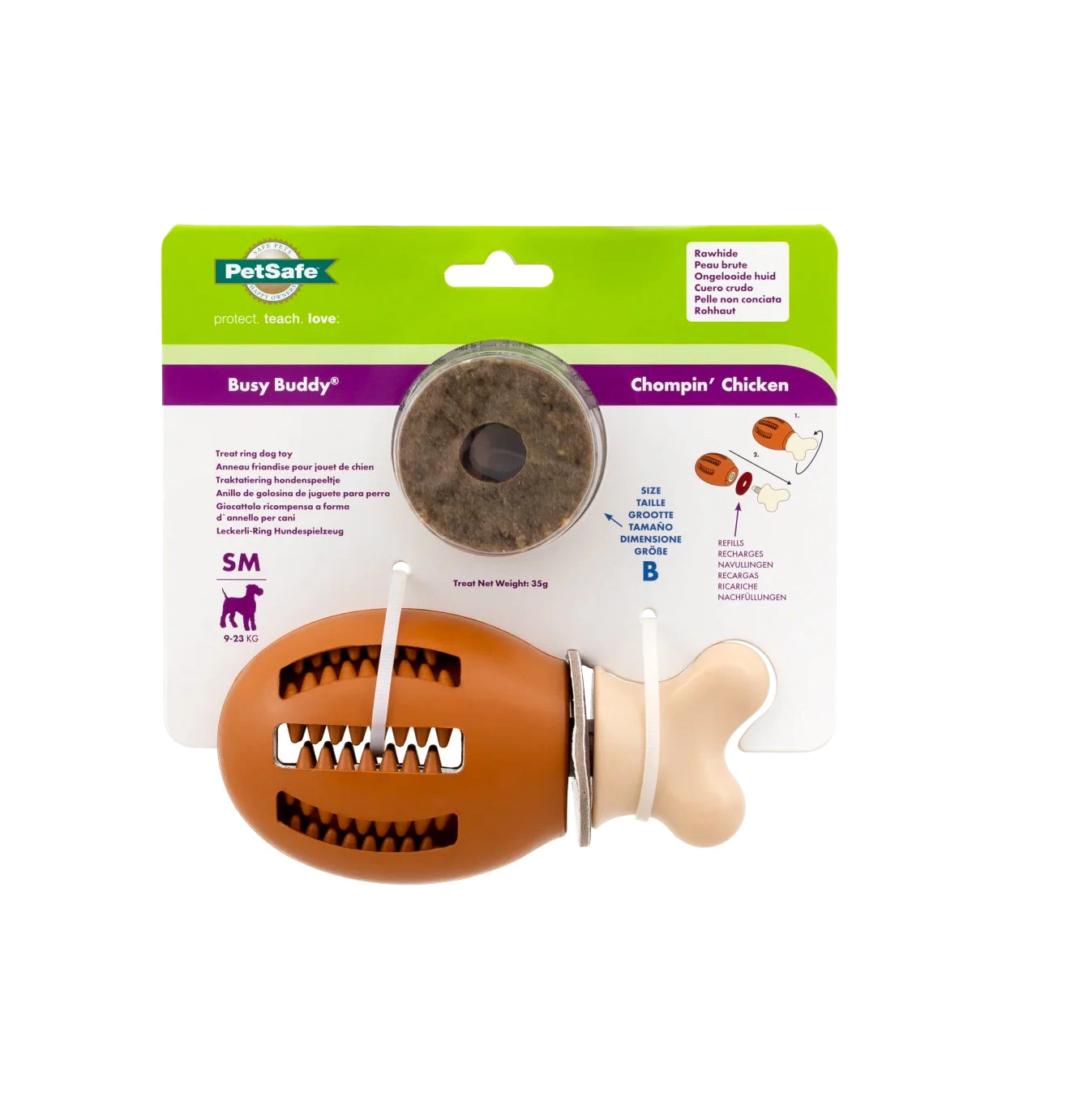 The BPA-free rubber is chicken scented to make your dog happy and it’s top rack dishwasher safe to make your life easier.