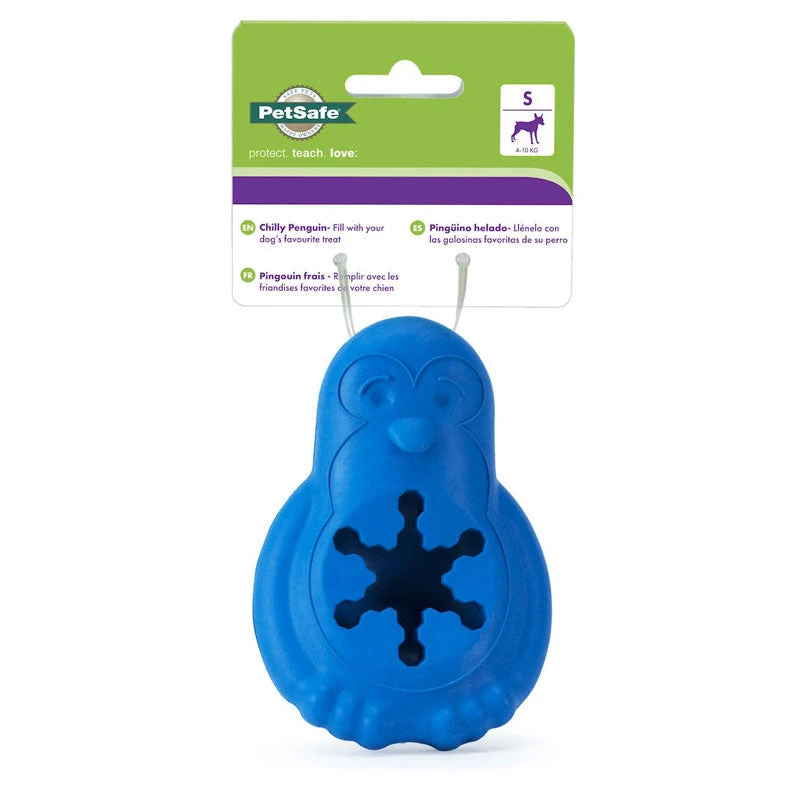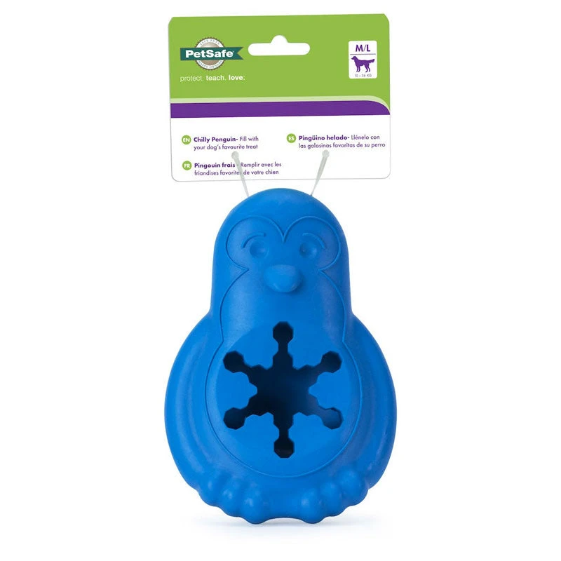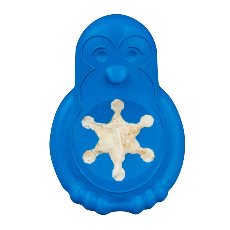 The Chilly Penguin Freezer Toy is a treat holding toy with a bowl shaped cavity for ice and treats. Multiple penguins can be stacked on top of one another in the freezer for easy storage before playtime. The toy will extend playtime and act as a fun treat for your dog!