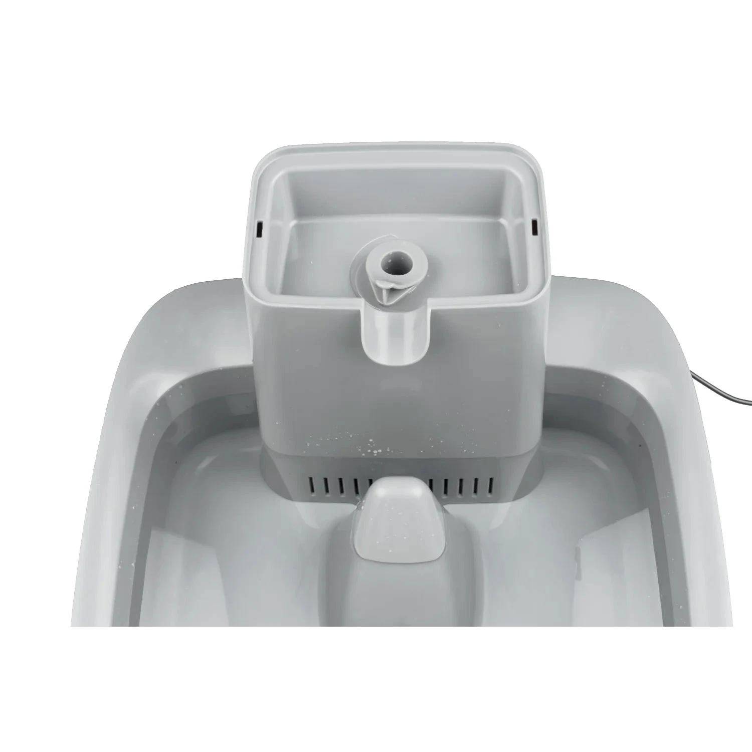 The PetSafe Drinkwell 7.5 Litre Pet Fountain is designed with you and your pet in mind. This automatic water bowl features a free-falling water stream with adjustable flow control. Choose from nearly silent circulation on the lowest setting to a tranquil stream on the highest. The flow control allows you to tailor the water flow to your pet’s needs. The large capacity bowl is perfect for big dogs and multiple pet households and the square bowl design is large enough for several pets to drink out of at the same time with minimal splashing. When it’s time to refill, simply use a pitcher to fill the bowl to the desired level. The 7.5 Litre Fountain was specifically designed with no hard-to-reach crevices to clean, allowing you to spend more quality time with your pet.