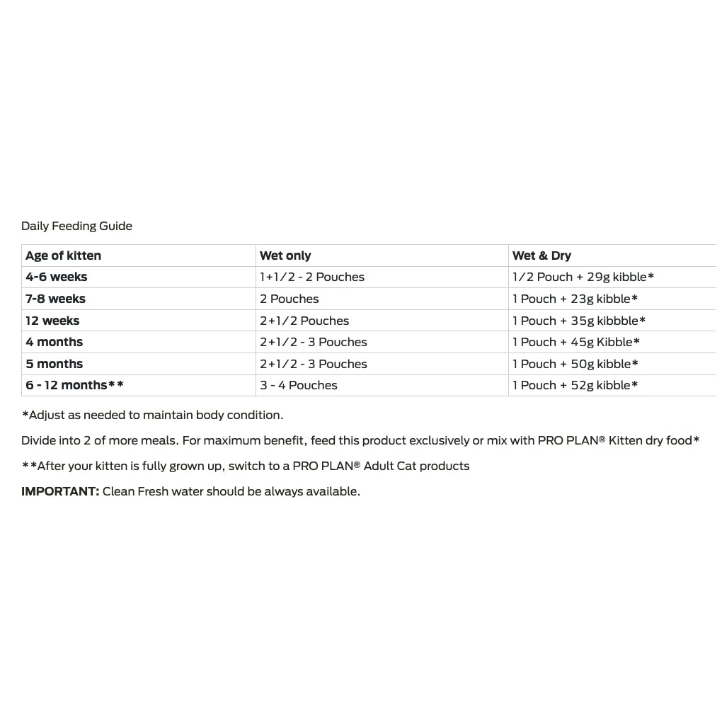PRO PLAN Kitten wet cat food is scientifically formulated to be 100% complete and balanced, containing all of the essential nutrients to support your kittens’ healthy bones, teeth and muscle growth.