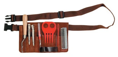 All there at your fingertips – 7 tools in a suede leather kit roll on a nylon belt. Kit includes rug hook, two 4inch hair clips, seam ripper, braid comb, large eye plastic needle and a 4inch aluminium mane comb. Ideal gift (even for yourself!)