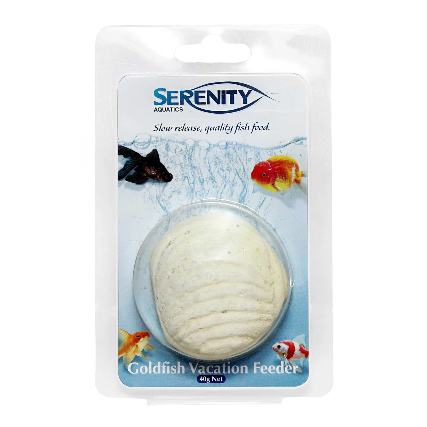 The Serenity Goldfish Vacation Feeder 1 Pack is a specially formulated block that slowly dissolves and releases quality goldfish food for your pet while you are away. As well as feeding your goldfish, the ingredients will help neutralise and purify the aquarium water.