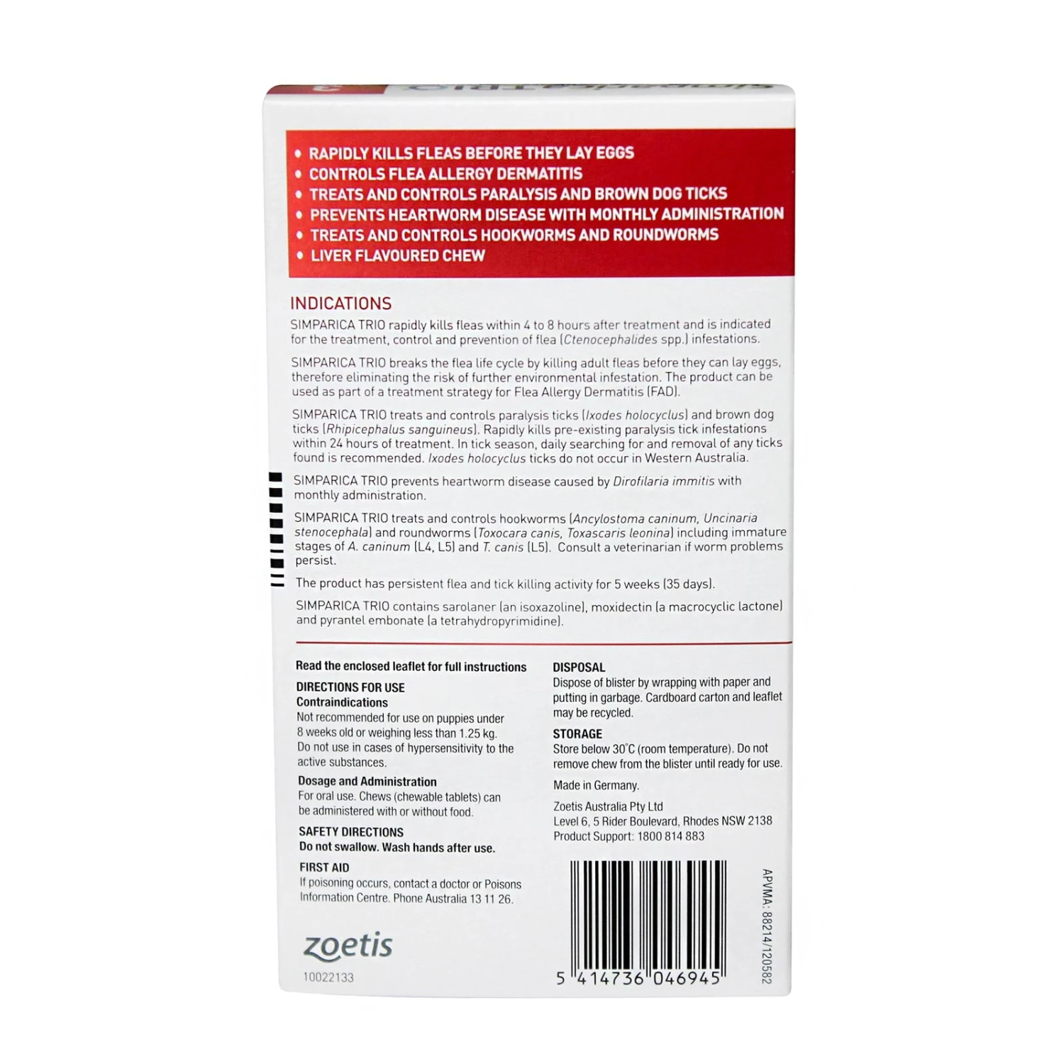 Simparica TRIO is safe to use in dogs from 8 weeks of age and as little as 1.25kg. Just one dose of Simparica TRIO provides triple action protection: