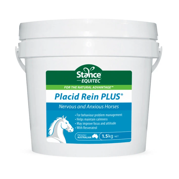 Placid Rein Plus is a unique powdered formula to support normal stress in horses and to help maintain a consistent attitude to work whether at home or away.