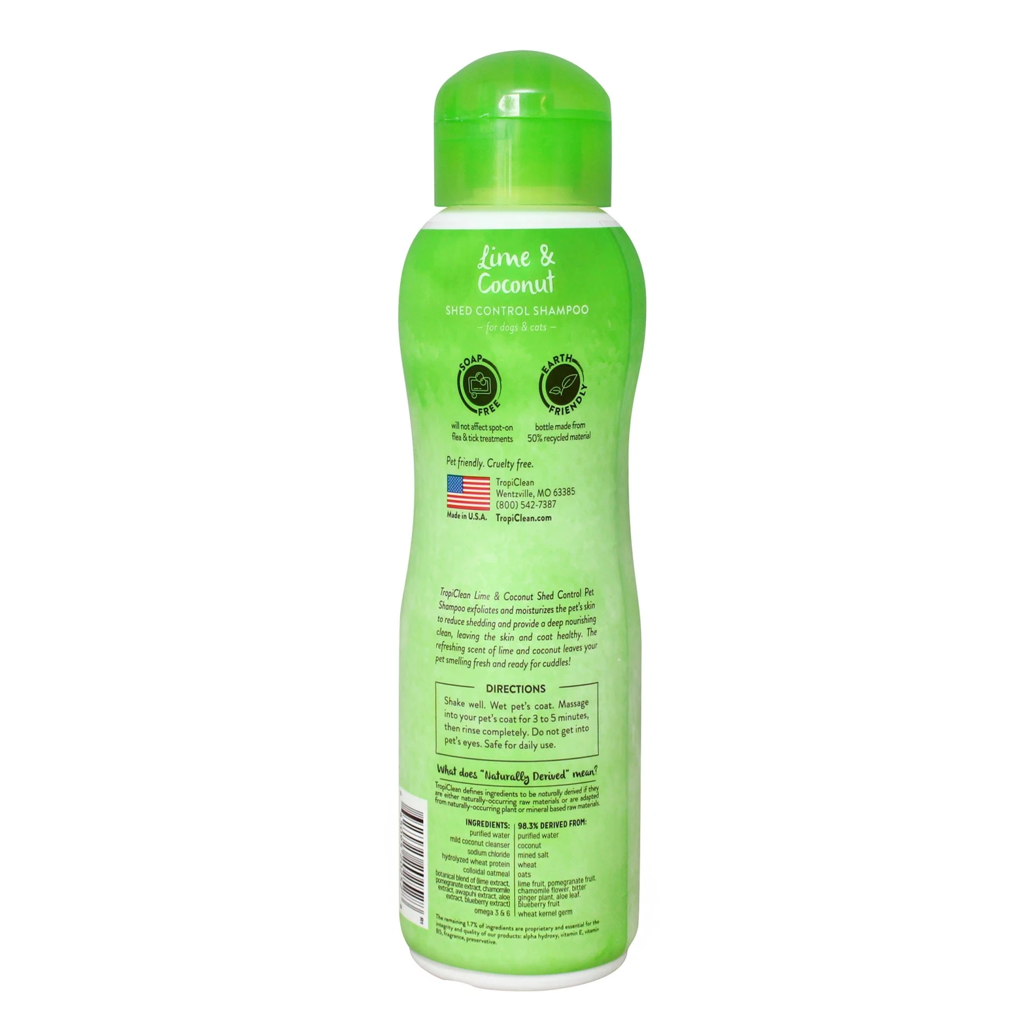 TropiClean Lime & Coconut Pet Shampoo with Omega 3 & 6 nourishes their skin to effectively reduce shedding and provide a deep refreshing clean. Pomegranate and awapuhi help remove excess hair and eliminate tangles, while oatmeal and coconut keep her skin and coat healthy and happy.