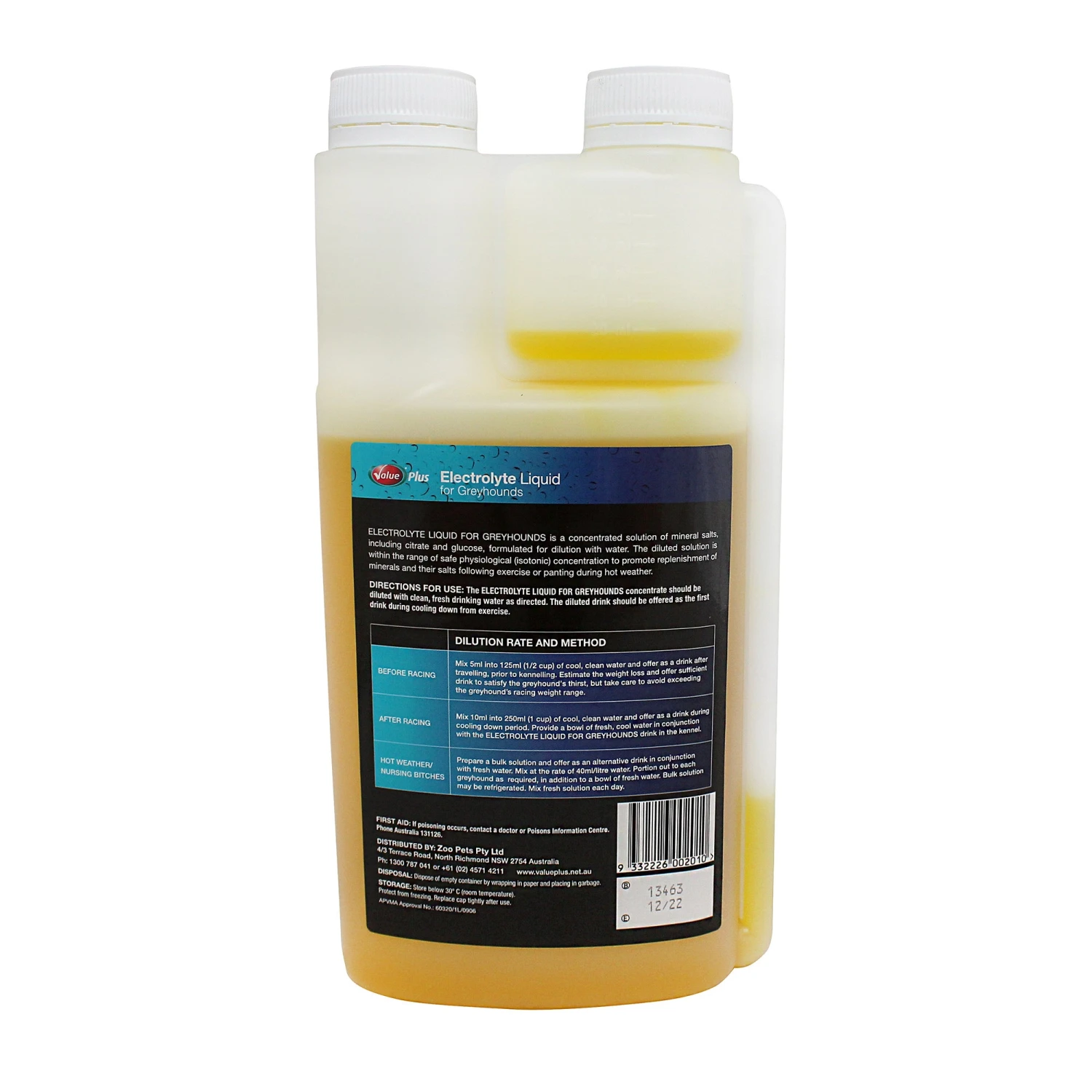 Electrolyte Liquid for Greyhounds is a concentrated oral electrolyte solution that may aid in restoring electrolyte and fluid levels depleted through hard work, travelling, sweat loss or panting during hot weather.