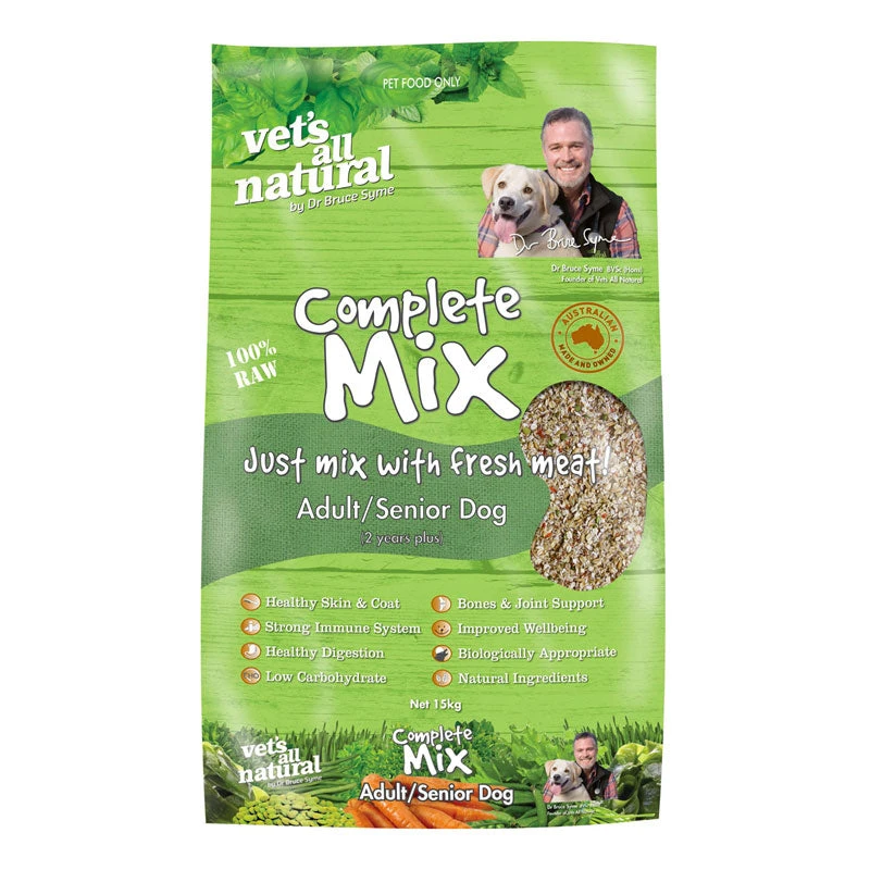 Vet’s All Natural Complete Mix for Adult /Senior Dogs is designed to fulfil the day to day needs of the average dog. Compared to puppies, adult activity falls, metabolism slows and growth stops.